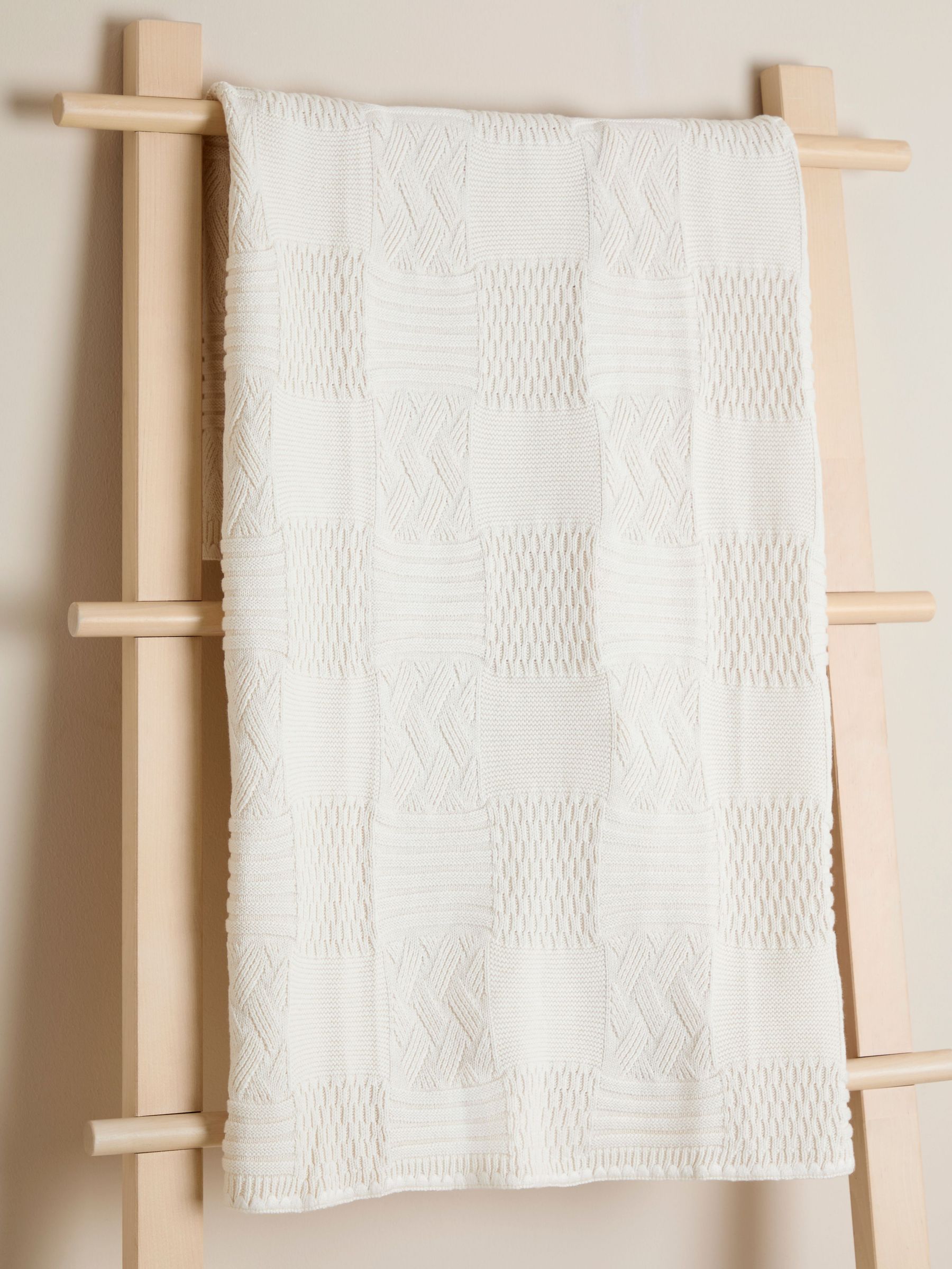 Cream Patchwork detail Large Multi-Coloured Stripe -Knitted Blanket