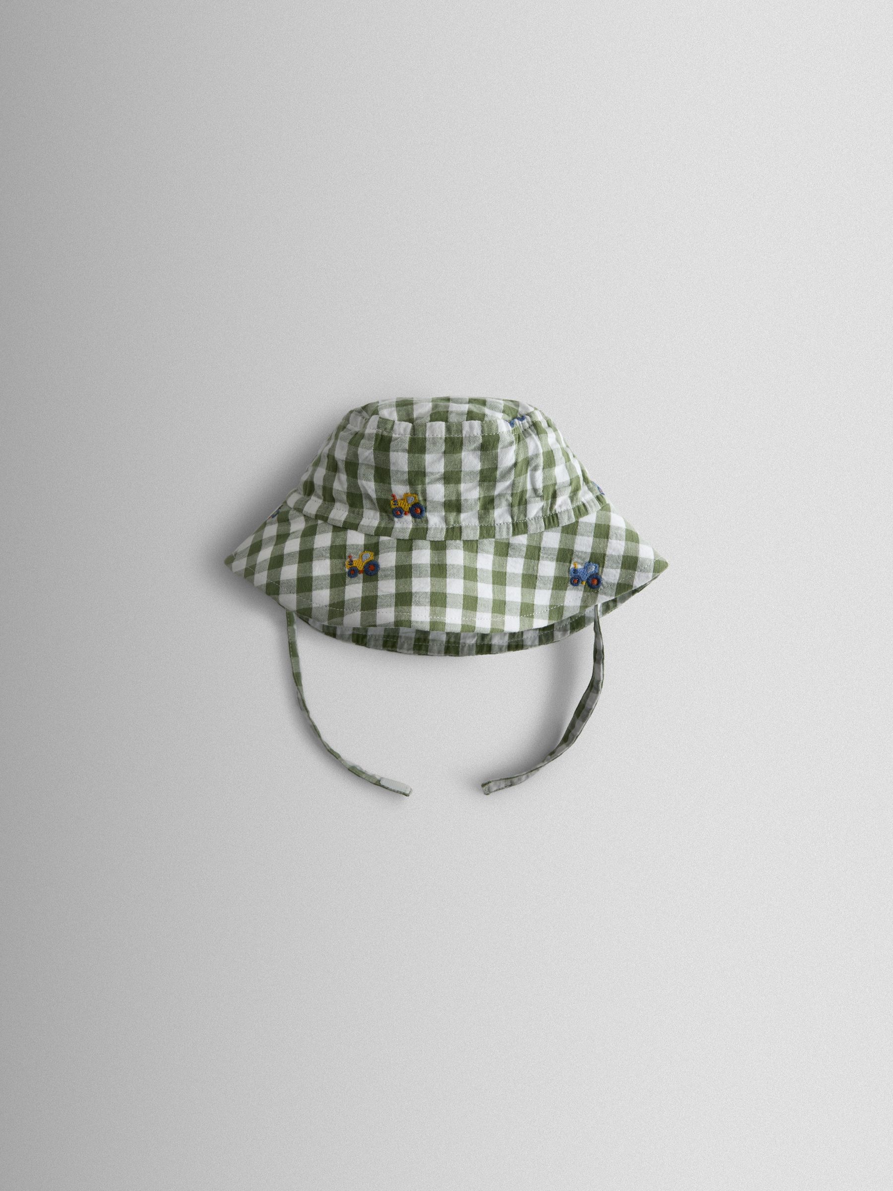Yellow Daisy Trim Seersucker Floppy Sun Hat