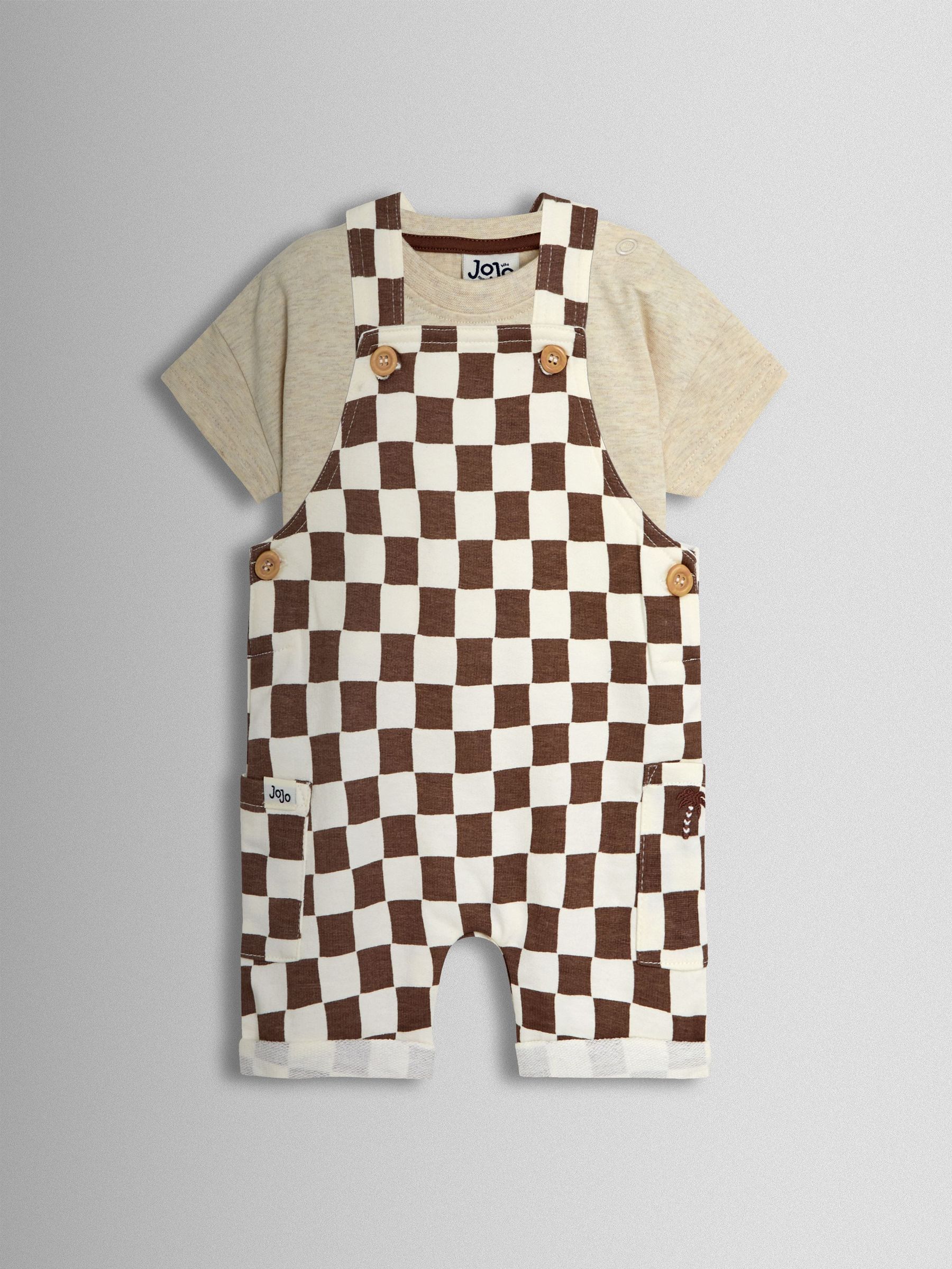 Stone 2-Piece Checkerboard Dungarees & T-Shirt Set