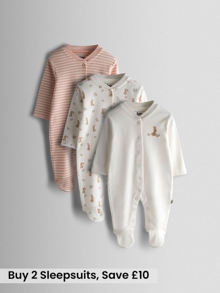 Save when you shop our multipack baby grows and discover favourites made from super-soft fabrics, playful prints and colourful designs to love. From cosy 3-pack sleepsuits made from 100% BCI Cotton to footless sleepsuits in comfortable fits, our baby grows multipack collection has never looked so good! Add some little extras into their mini wardrobe and explore our baby coats, pramsuits and baby hats in a range of fun styles.