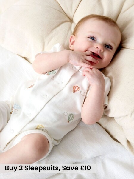 White Hot Air Balloon Embroidered Organic Cotton Short Sleeve Sleepsuit