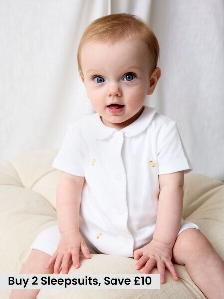 White Duck Embroidered Organic Cotton Short Sleeve Sleepsuit