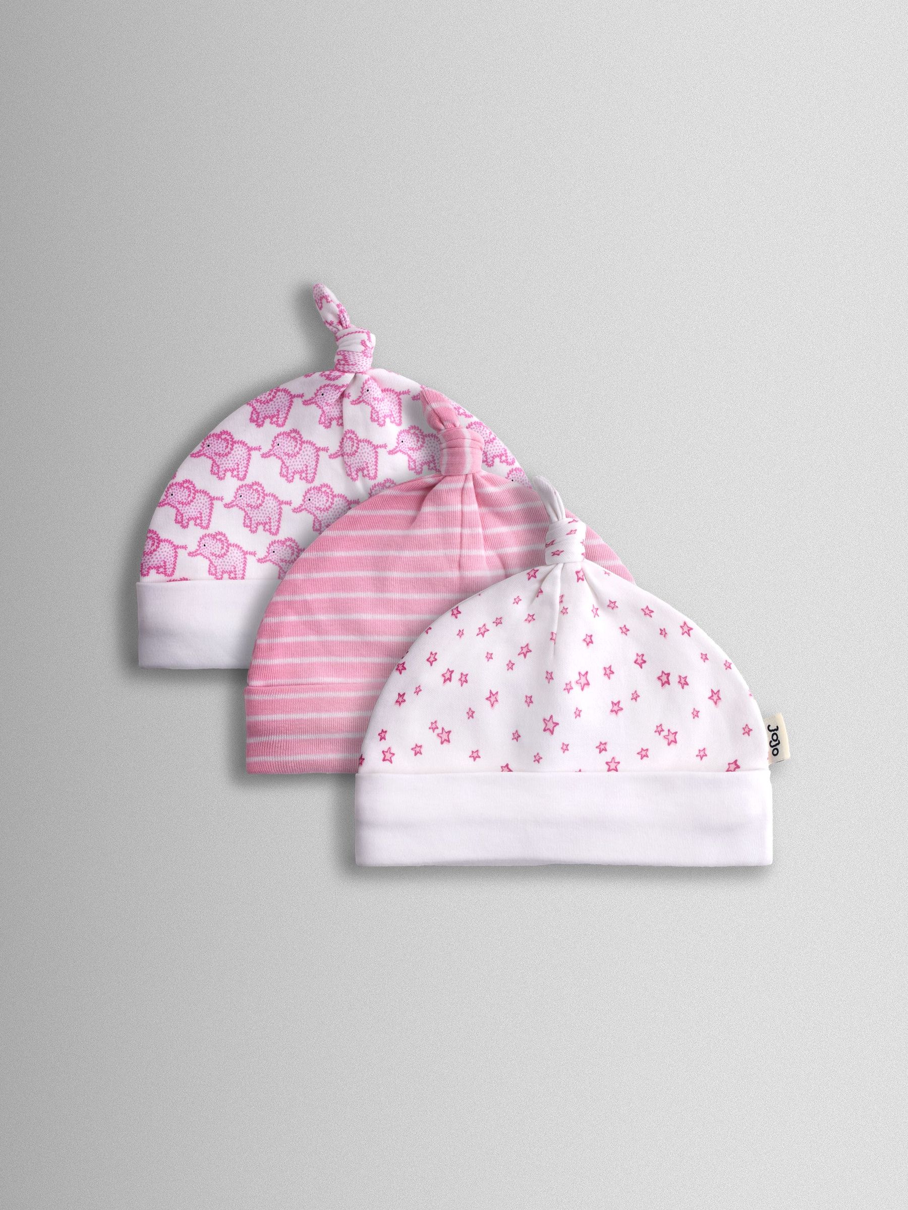 Pink 3-Pack Elephant, Stripe & Star Baby Hats