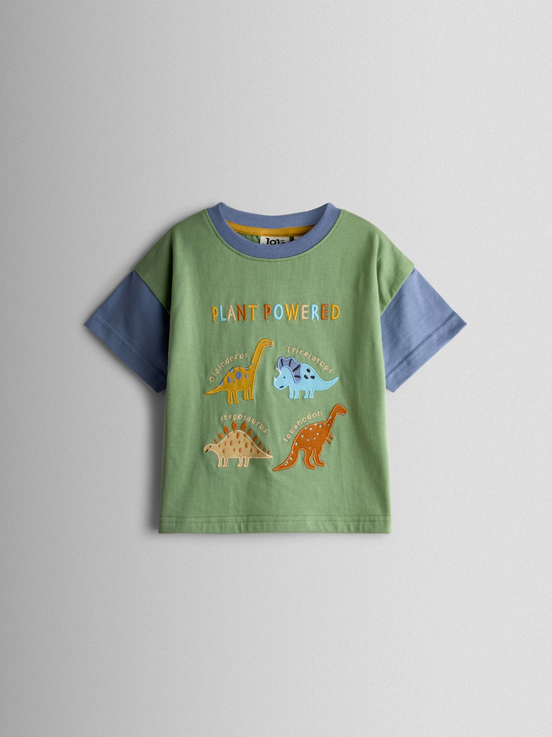 Khaki Green Dino Plant Powered Applique T-Shirt