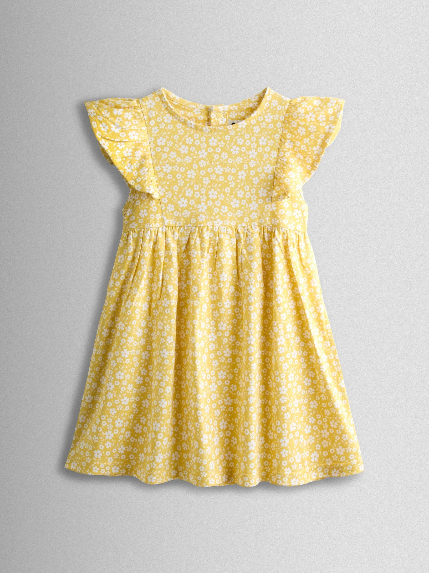 Yellow Daisy V back Frill Dress