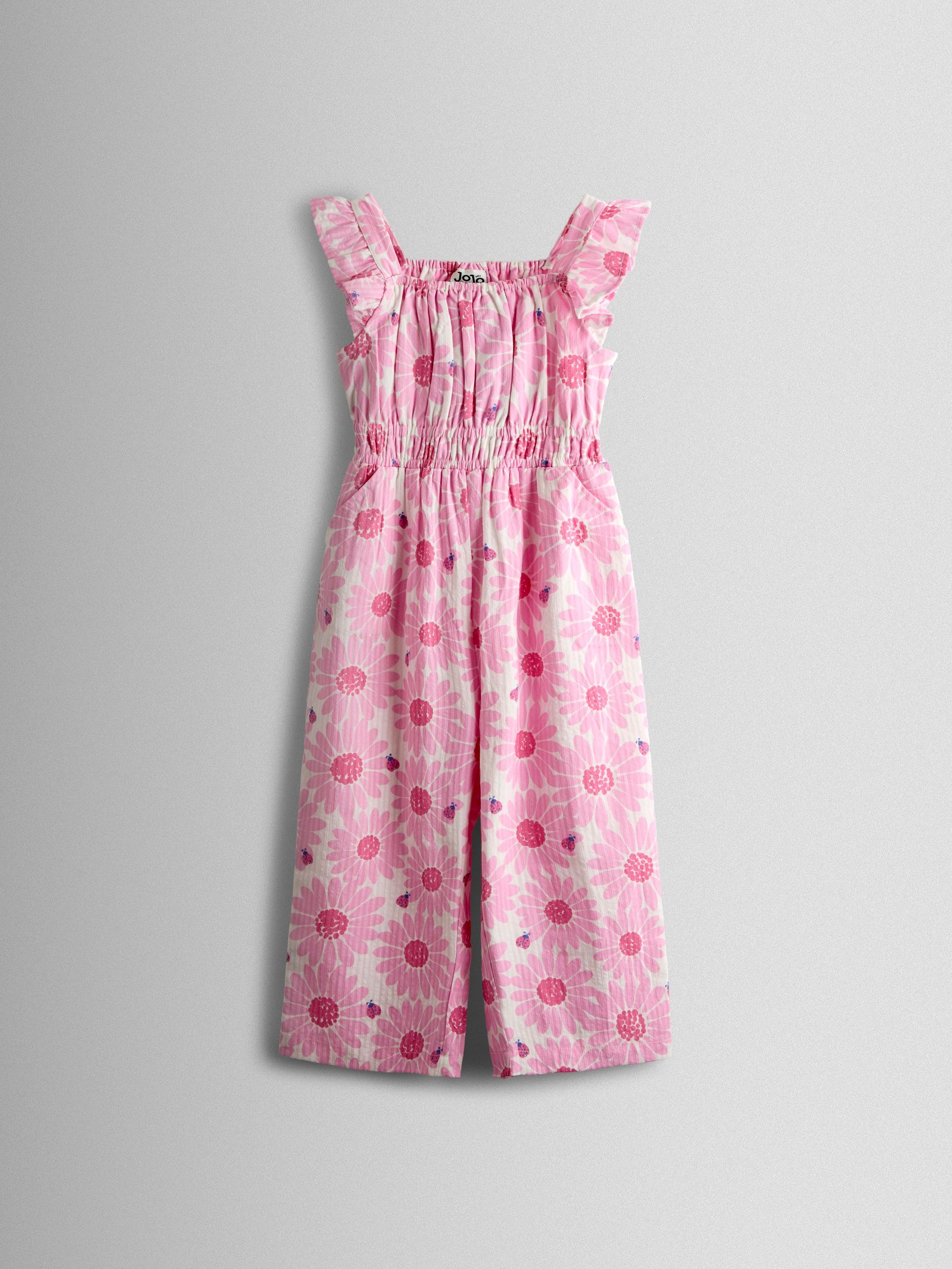 Fuchsia Pink Gingham Frill Shoulder Embroidered Romper