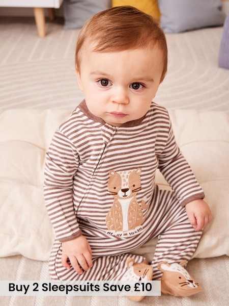 Tan Bear Organic Cotton Zip Sleepsuit