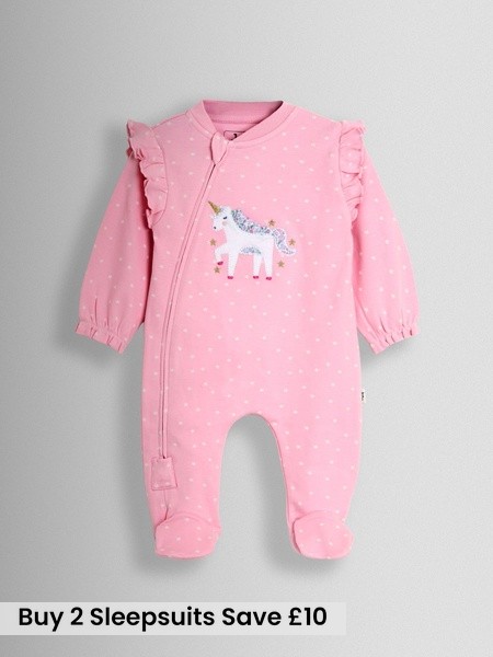 Pink Unicorn 100% Cotton Footed Frill Sleepsuit