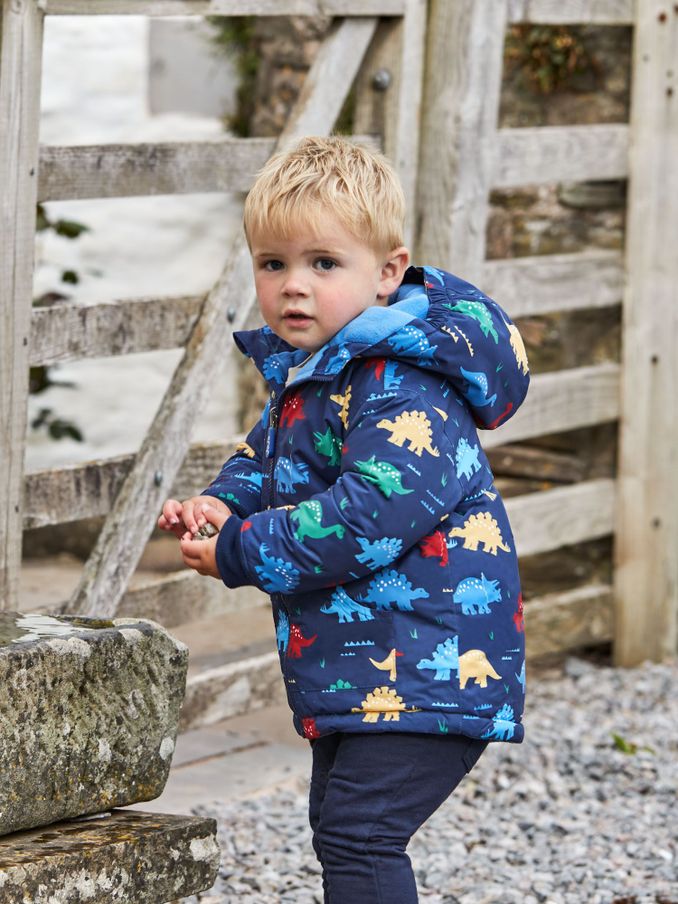 Navy Multi Dino Waterproof Borg Lined Jacket