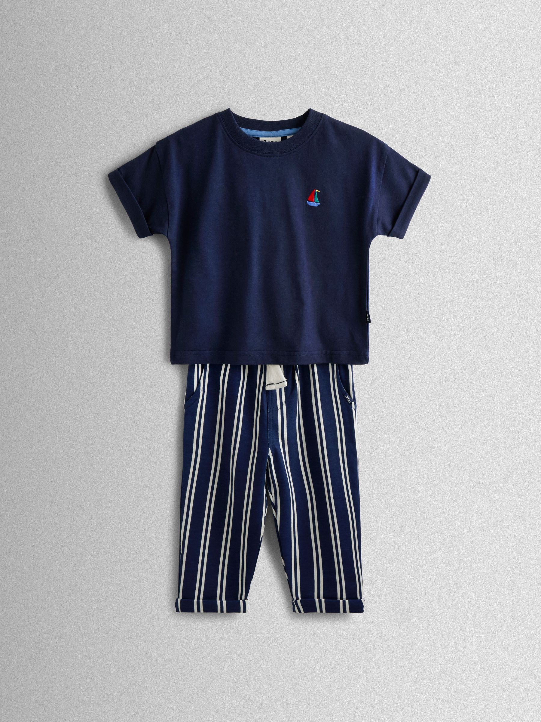 Navy Boat 2-Piece T-Shirt & Stripe Trouser Set