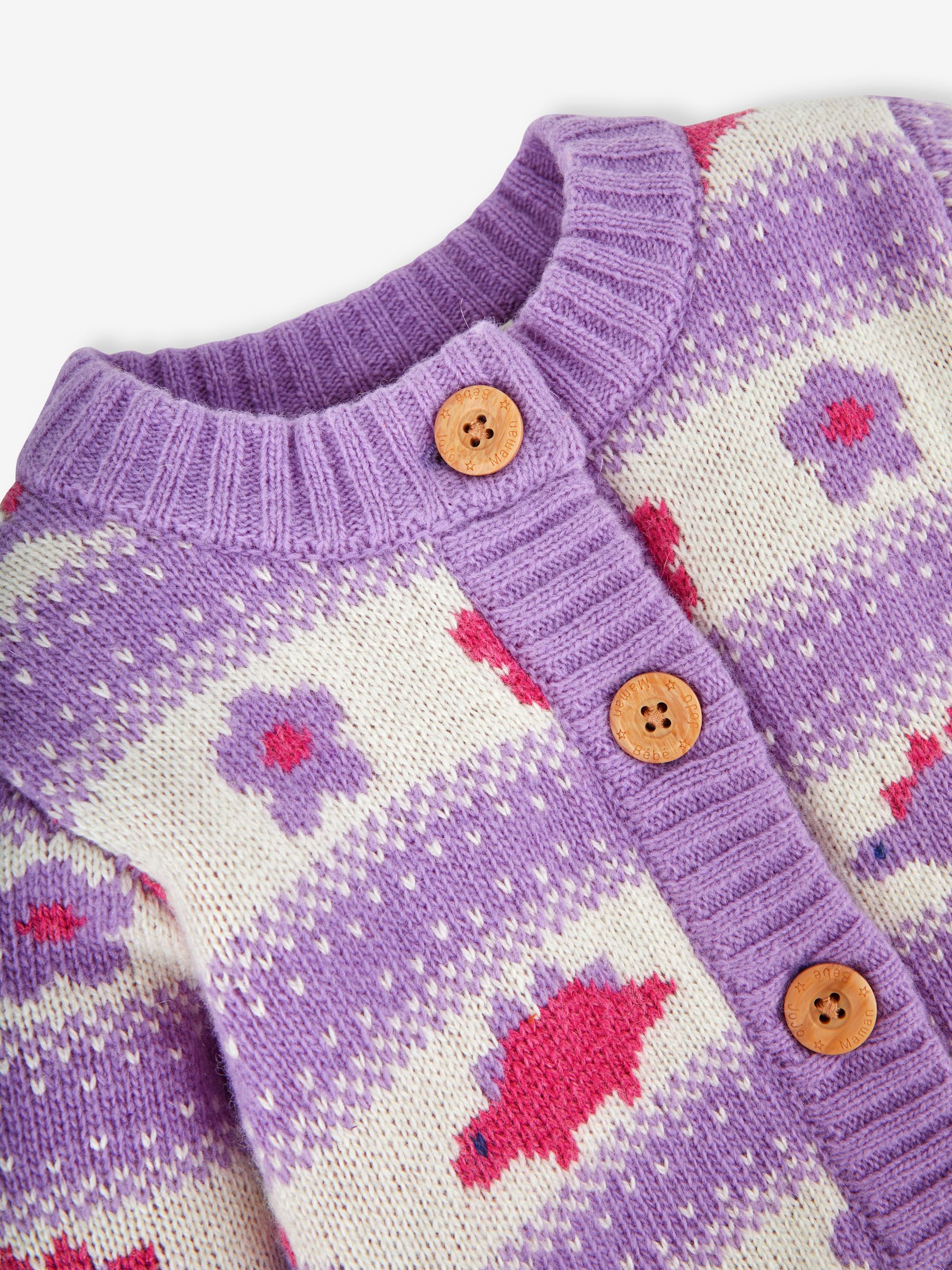 Lilac Purple Dino Fairisle Pattern Cardigan