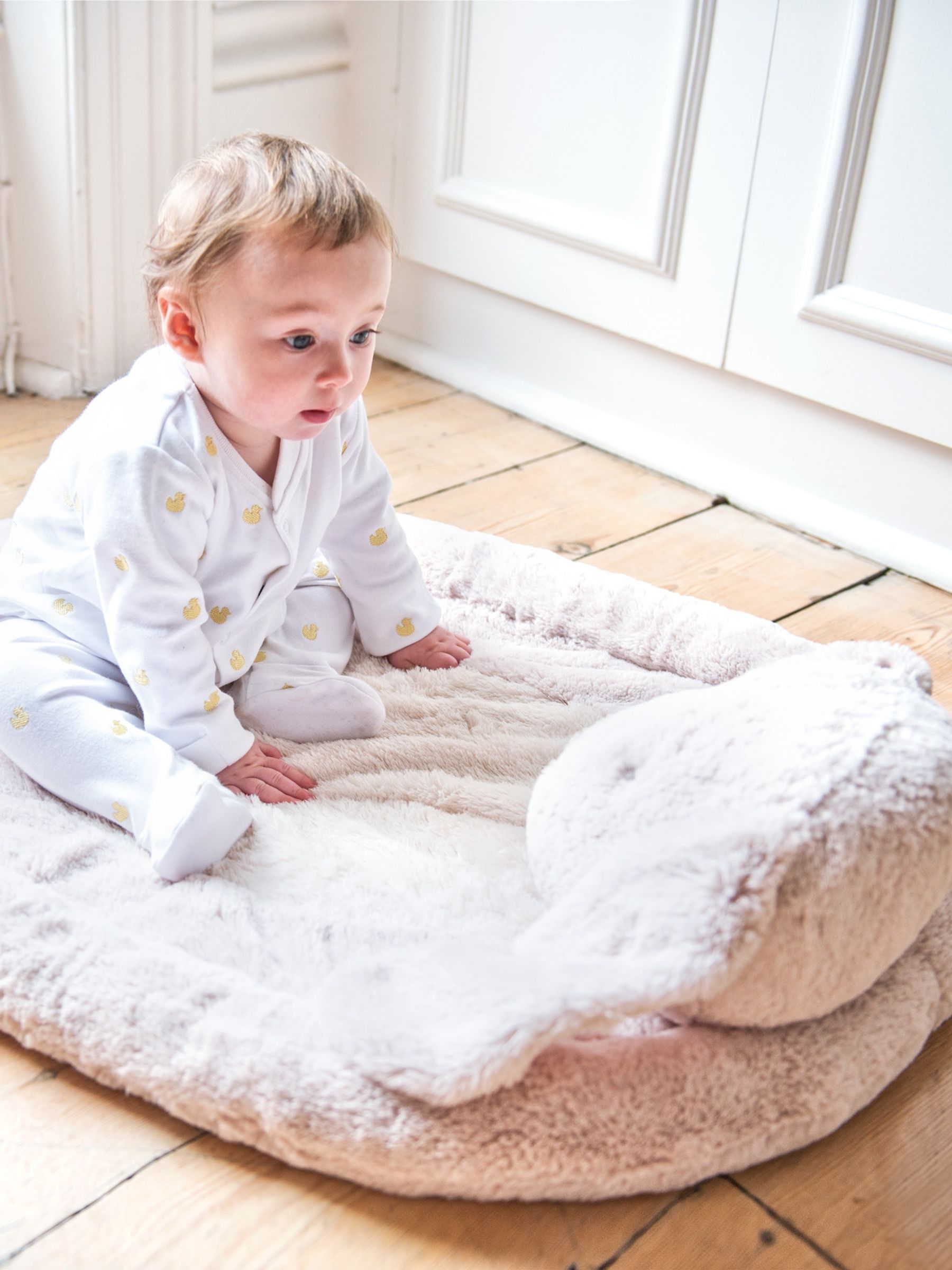 A gorgeous baby mat is perfect for a soft, safe spot to rest or for tummy time. Made from supersoft plush and with a friendly JoJo bunny face, the Bunny Playmat looks fabulous in every nursery.