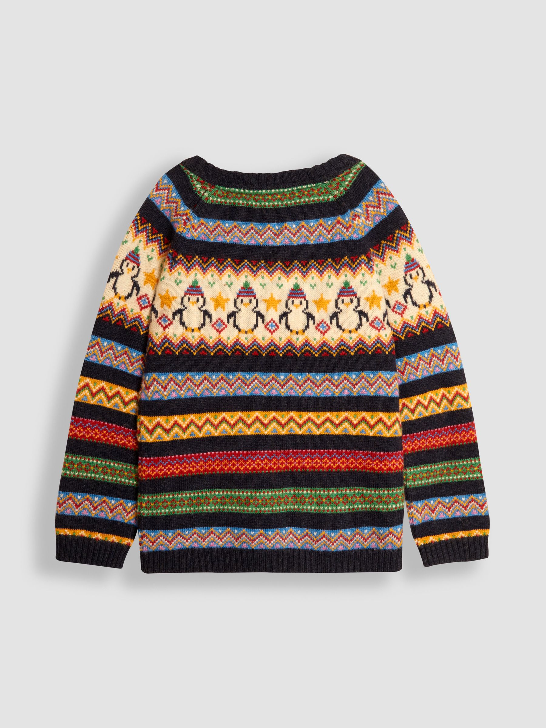 Our Navy Penguin Fair Isle Jumper features a traditional pattern that's perfect for the festive season. It is made with a touch of cashmere, so it will feel comfortable against your child's skin, as well as both warm and soft. perfect for Christmas day.