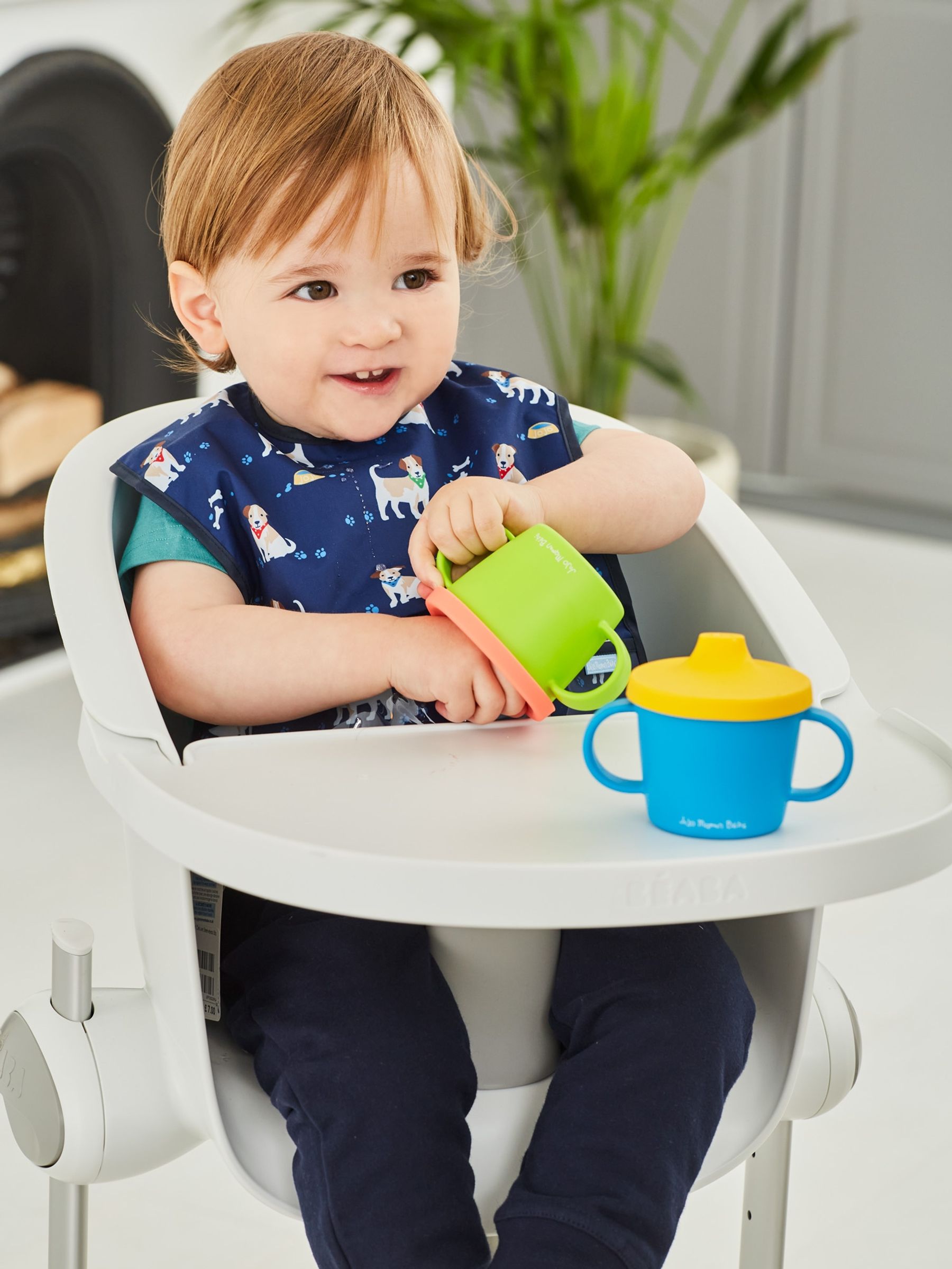 Made from PLA, a plant-based, biodegradable material, our Drink & Snack Pot Set is a great option for parents looking to make more sustainable choices. The set includes a sippy cup and a snack pot with a clever anti-spill lid which allows your child to independently help themselves to snacks perfect for starting your little one's weaning journey. Made from PLA, a biodegradable, plant-based material, with a silicone lid Set includes sippy cup and snack pot with easy access and anti-spill lid Ideal for weaning Use under adult supervision BPA, melamine and phthalate free Main: PLA, a plant-based dinnerware that is biodegradable. Other: Silicone Dishwasher & microwave safe 180ml/ 6oz Suitable from 4 months plus So, what exactly is PLA? PLA is a material made using renewable plant-based fibres such as corn starch, wheat, sugar cane & even sweet potatoes. This mixture goes through a process to bring it all together, creating the plant-based resin known as Polylactic Acid - PLA!PLA is a food safe, durable alternative to oil-based plastics and is BPA and melamine free, while also being biodegradable and fully compostable.Does PLA contain plastic?PLA is also known as bioplastic or a thermoplastic and is solely derived from plant fibres and renewable sources only, not from oil like most traditional plastics. There are no traditional plastics added – so this is a great alternative.Are they dishwasher safe?Yes! For best results we recommend that you wash either in warm soapy water or on the top shelf of the dishwasher at a maximum of 60 degrees using a mild soap or detergent.Can I use it in the microwave?Yes! PLA plates and bowls are microwave safe, please see the packaging for guidance.