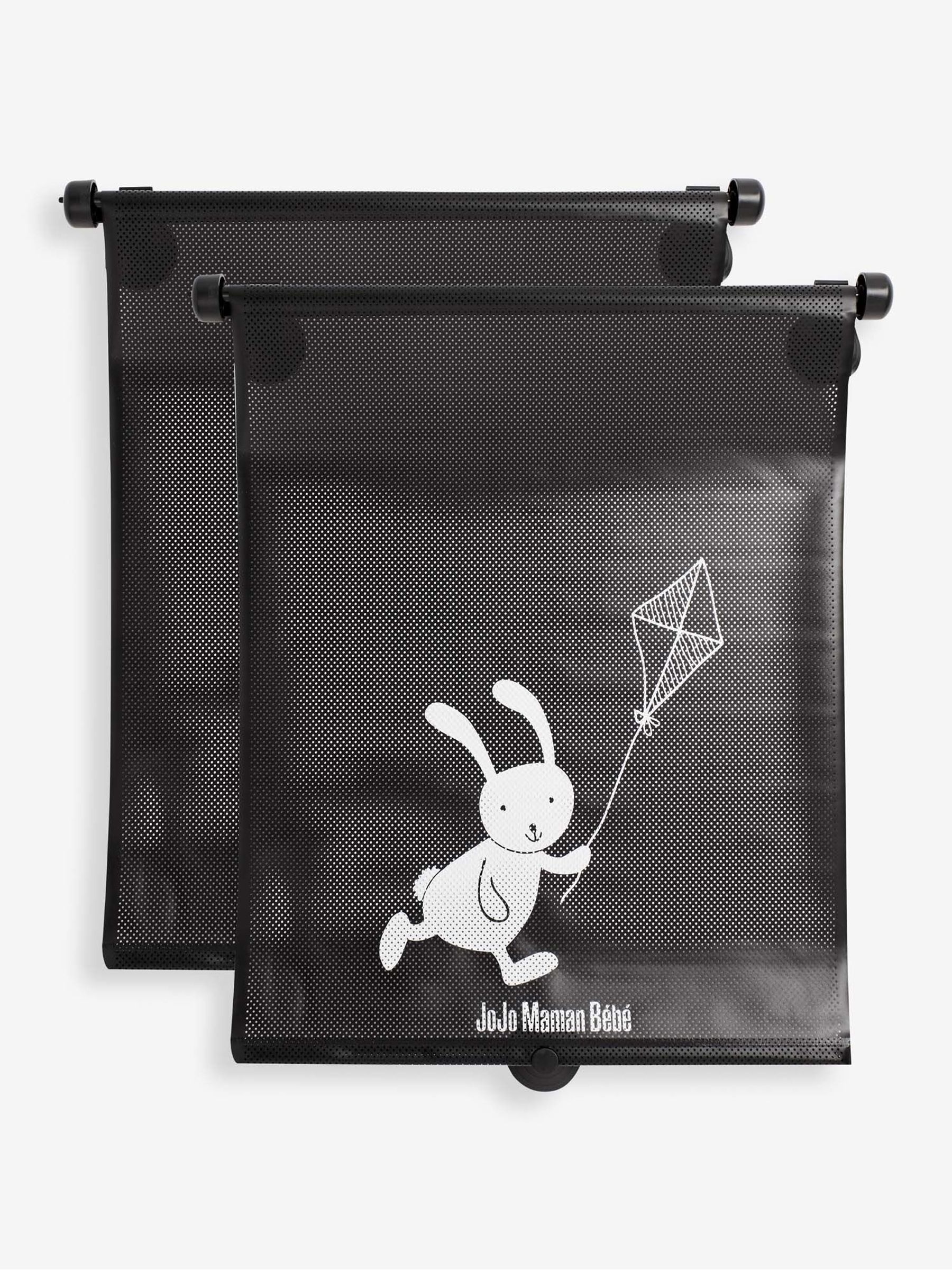 The much-loved JoJo bunny makes an appearance on practical products, too. The Retractable Car Sunshades are essential for sunny days, helping to shield your baby from bright sunshine and allowing them to sleep peacefully in the car. Simple to pop up and roll down in seconds, they're as easy to use as they are useful. 2 per pack Simple to pop up Rolls down in seconds for easy storage Two attachment options: clip over the window or suction cup to stick to the window Main: Phthalate-free PVC, Other: ABS Plastic Wipe clean only 40 x 46cm This product is not a toy Do not roll down the window while in use Do not attach to the front or rear windscreen