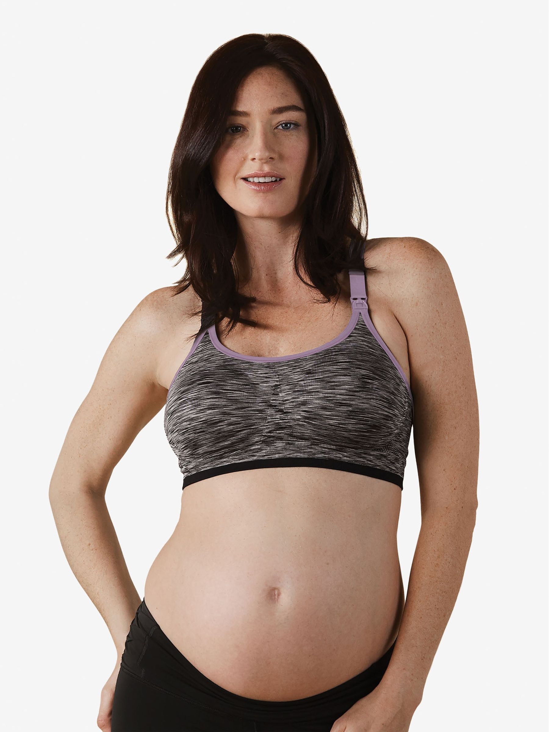 The Body Silk Seamless Rhythm Nursing Bra by bestselling maternity bra brand Bravado is a beautiful and modern athleisure bra that gives you some much-needed luxury both during your pregnancy and after your baby arrives. Featuring 4-way stretch fabric and moulded cups that hug your changing body and adapt with you as your shape changes, it will help you look and feel fresh as you continue to do your favourite low-impact activities during pregnancy and early motherhood. Luxuriously soft, seamless and wire-free for added comfort 4-way stretch fabric hugs your changing shape Moisture-wicking material helps keep you dry, perfect for low-impact activity Knit-in zones around the cups for additional support Moulded cups offer shape and separation without compression. Main: 67% Polyester 25% Nylon, 8% Elastane We recommend hand washing in cold water. However, if you are using the washing machine, place it in a lingerie bag To reduce fading and shrinkage, choose the delicate cycle and cold water Avoid bleach as it causes the fabric to lose its stretch To dry, hang it to air dry with the cups reshaped and the back hooked up Do not iron