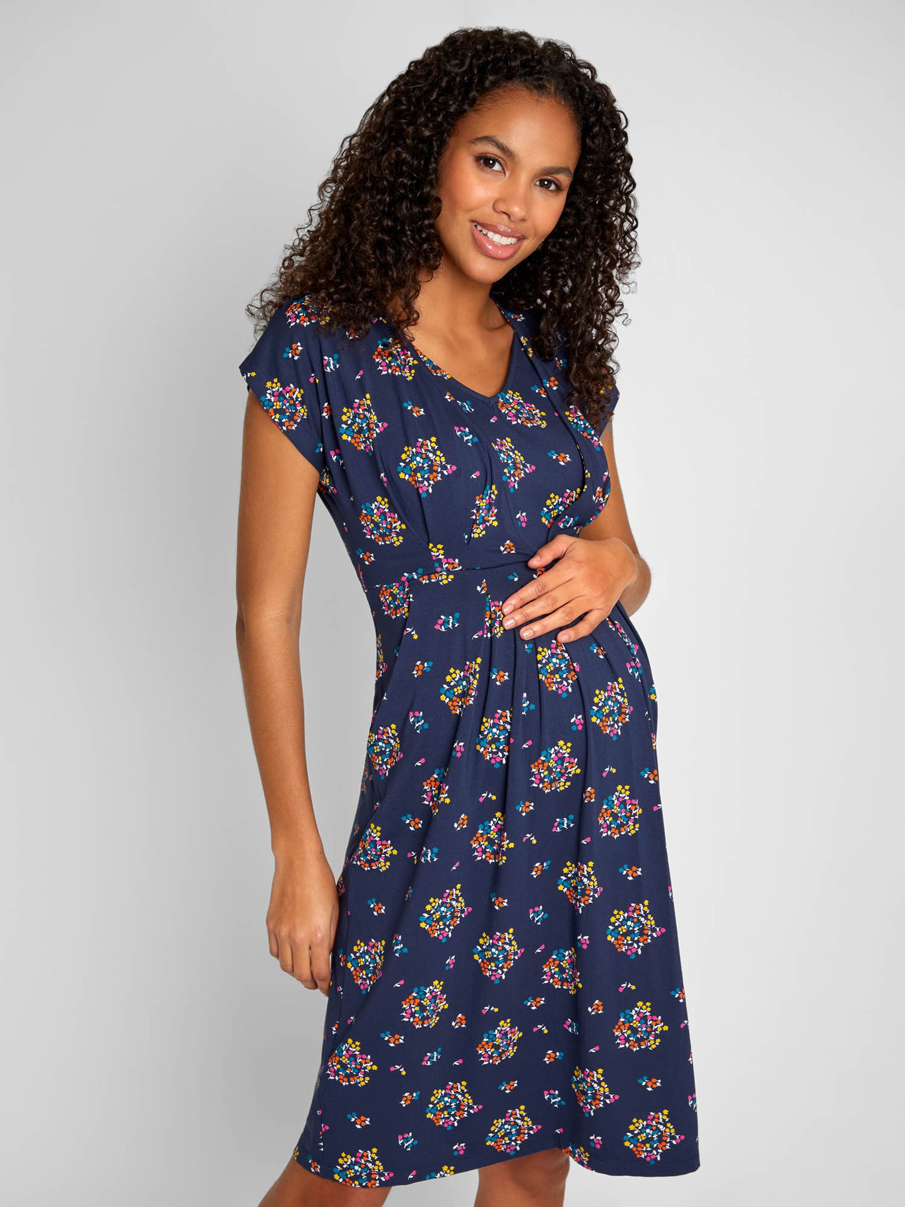 There's no reason why practical pregnancy styles can't be stylish too. Our Navy Floral Pleated Maternity & Nursing Tunic Dress ticks every box when it comes to comfort, style and functionality. Made with a colourful floral pattern, the supersoft fabric always feels good, and concealed slits allow for easy nursing access. Style it with your favourite pair of trainers or sandals and leggings for a cute summer look that's ideal for any occasion Designed to fit during and after pregnancy All-over floral print Supersoft touch Easy and discreet breastfeeding access Inverted box pleats to front Short sleeves Side pockets 95% Viscose, 5% Elastane Machine washable