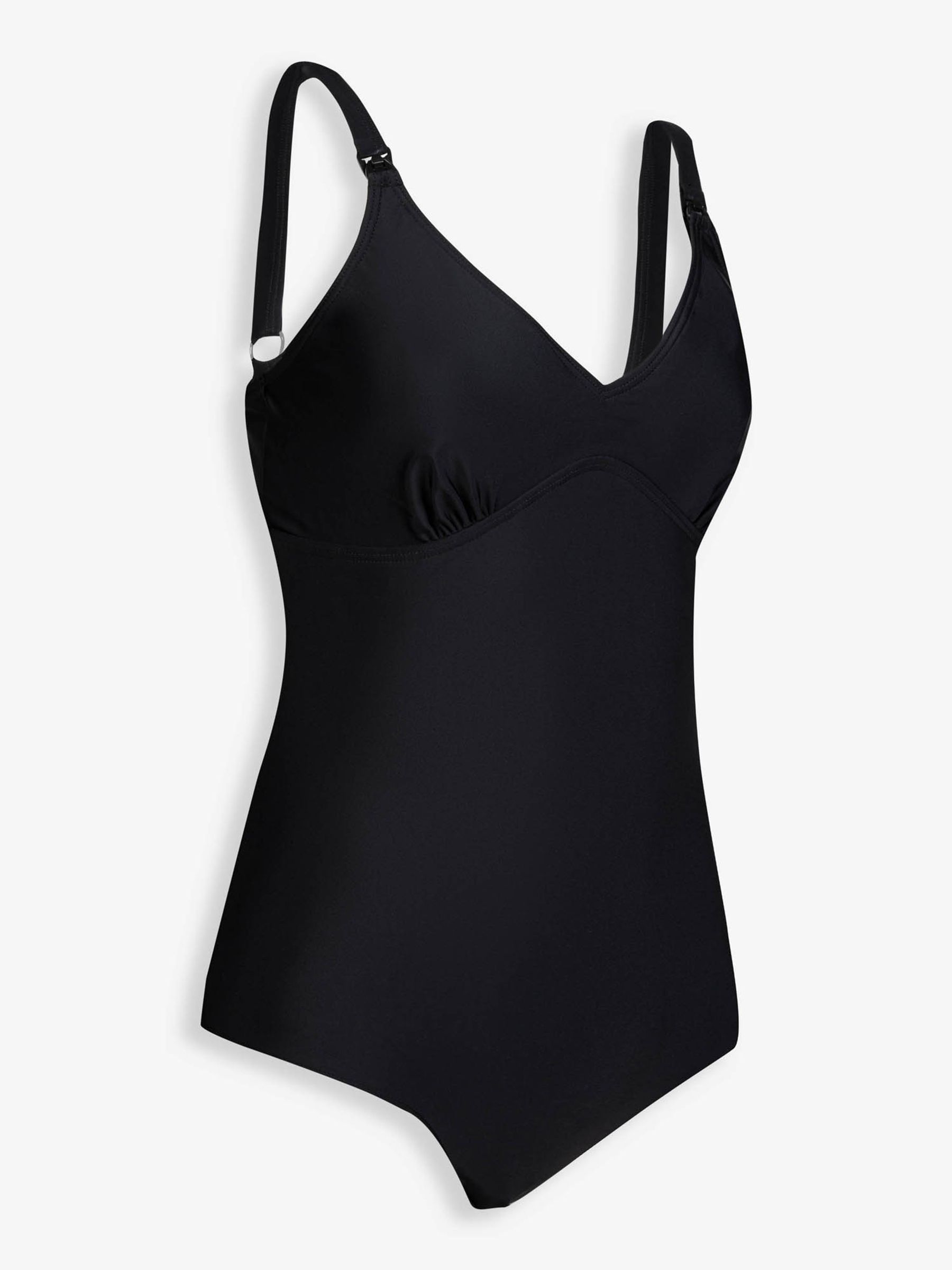 The Black Postnatal Support & Nursing Swimsuit was designed to keep you comfy and confident in your changing body post-pregnancy, so you can splash, swim, or paddle in style. It gently supports you in the water while the adjustable straps allow you to customise the fit around your bust for a perfect fit. Supportive front panel Ideal for the pool or the beach Drop-down straps for easy breastfeeding access Adjustable, wide straps Gathering details to bust Machine washable To prolong the life of your maternity swimwear, we recommend always rinsing it immediately after use