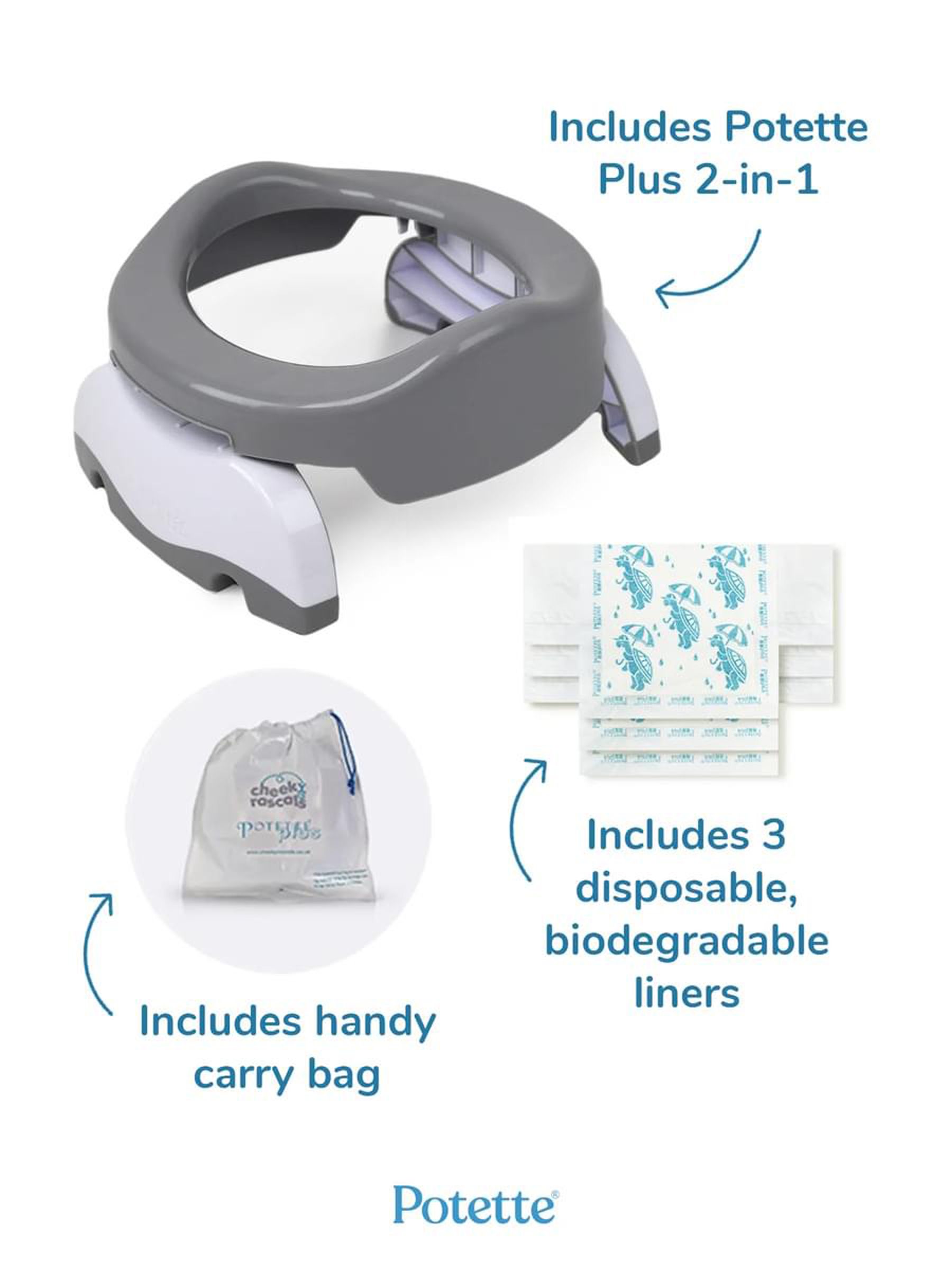 The Potette Plus Potty is perfect as an emergency solution when your child can't wait, especially if recently potty trained. Hygienic and convenient, the Potette Potty folds flat, making it easily portable. The Potette can also be used with a standard toilet for a practical solution when it comes to the later stages of potty training.