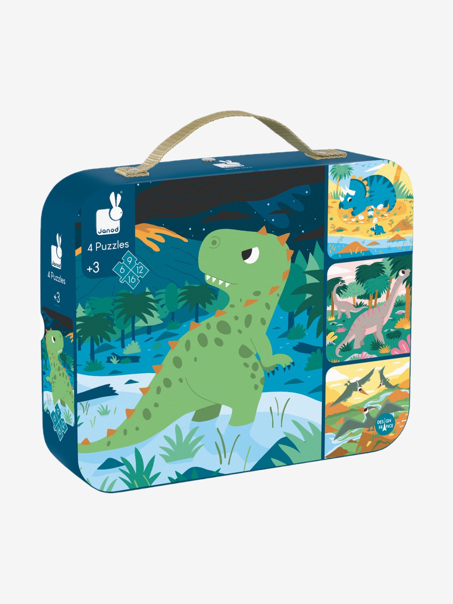 This set of 4 dinosaur-themed puzzles in progressive difficulty is perfect for any pint-sized palaeontologist who wants to take a walk on the wild side! In the box, you'll find puzzles of 6,9, 12 and 16 pieces, intended to challenge your child as they become more adept at solving puzzles. Each puzzle has a different coloured back, helping your child sort the right pieces if they need some gentle prompting. Put them together for a dino-dorable playtime you won't forget. Set of 4 puzzles 6, 9, 12 and 16-piece puzzles Coordinated coloured backs to sort pieces. Helps develop problem-solving skills 20.07 x 20.07 x 0.25cm Suitable for 3 years
