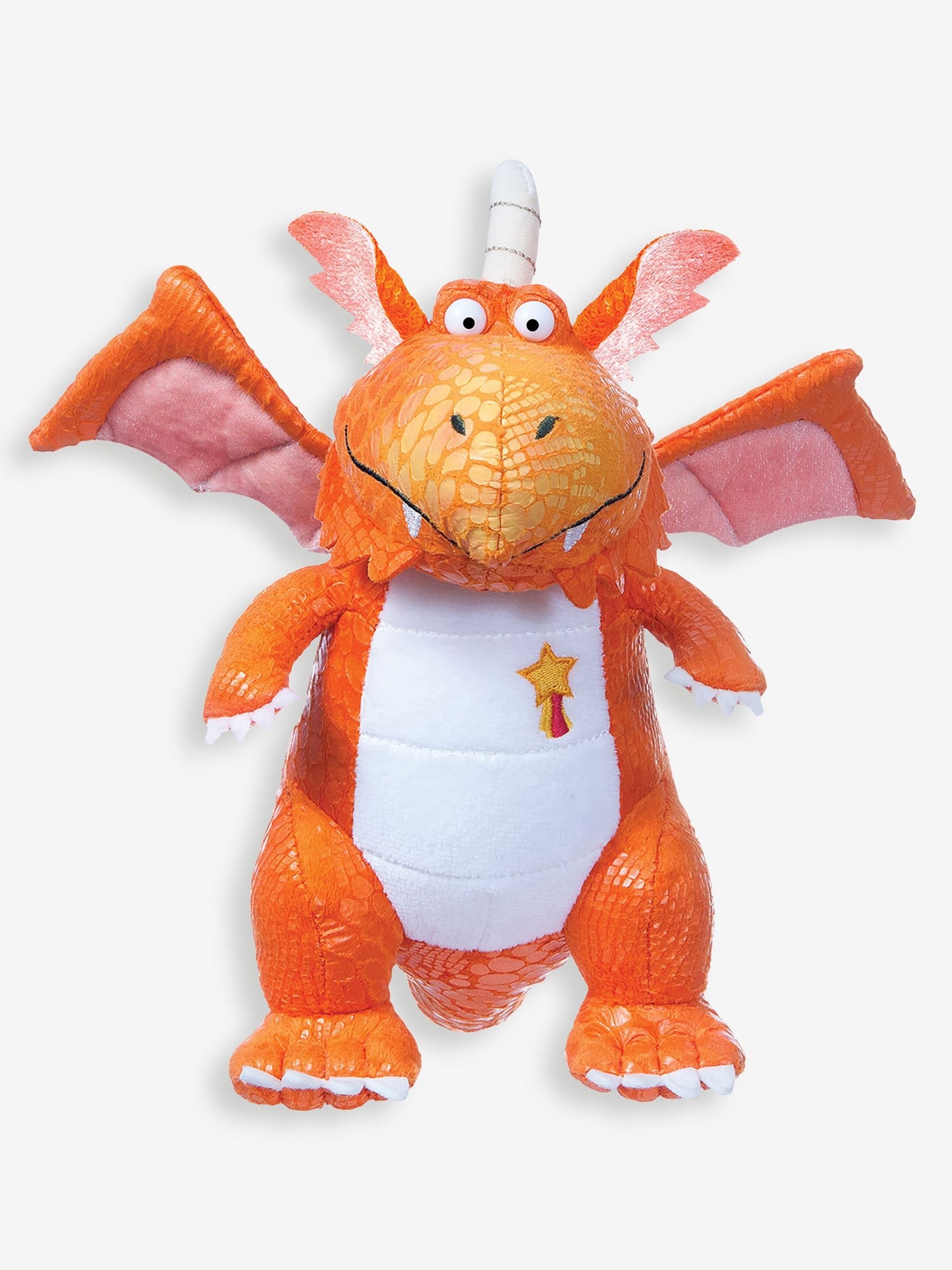 Zig zag through the blue sky with Zog. Can this young, warm-hearted dragon learn the Dragon trade? Made out of soft orange plush fur with wings, throw the Zog plush toy up, up, and away on outdoor adventures. And every child will love Zog's smiley face and big white belly. Cuddle up with Zog and make bedtime reading out of this world.