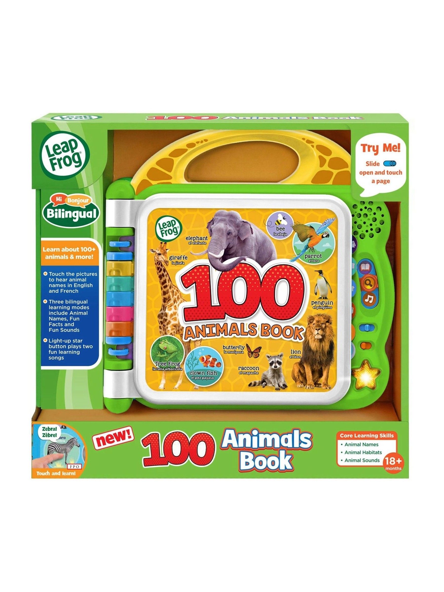 Join all the animals and explore their habitats and new vocabulary in the 100 Animals Book. Explore the colourful pages and touch each picture to hear the animals, their sounds and habitats along with exciting facts and sound effects. Immerse your child in bilingual play by sliding the language switch to hear the words, songs and instructions in French. Touch the pictures to hear fun animal facts in Fun Fact mode or press the light-up star button to hear three learning songs. x2 AA batteries included. Suitable for 18 months+.