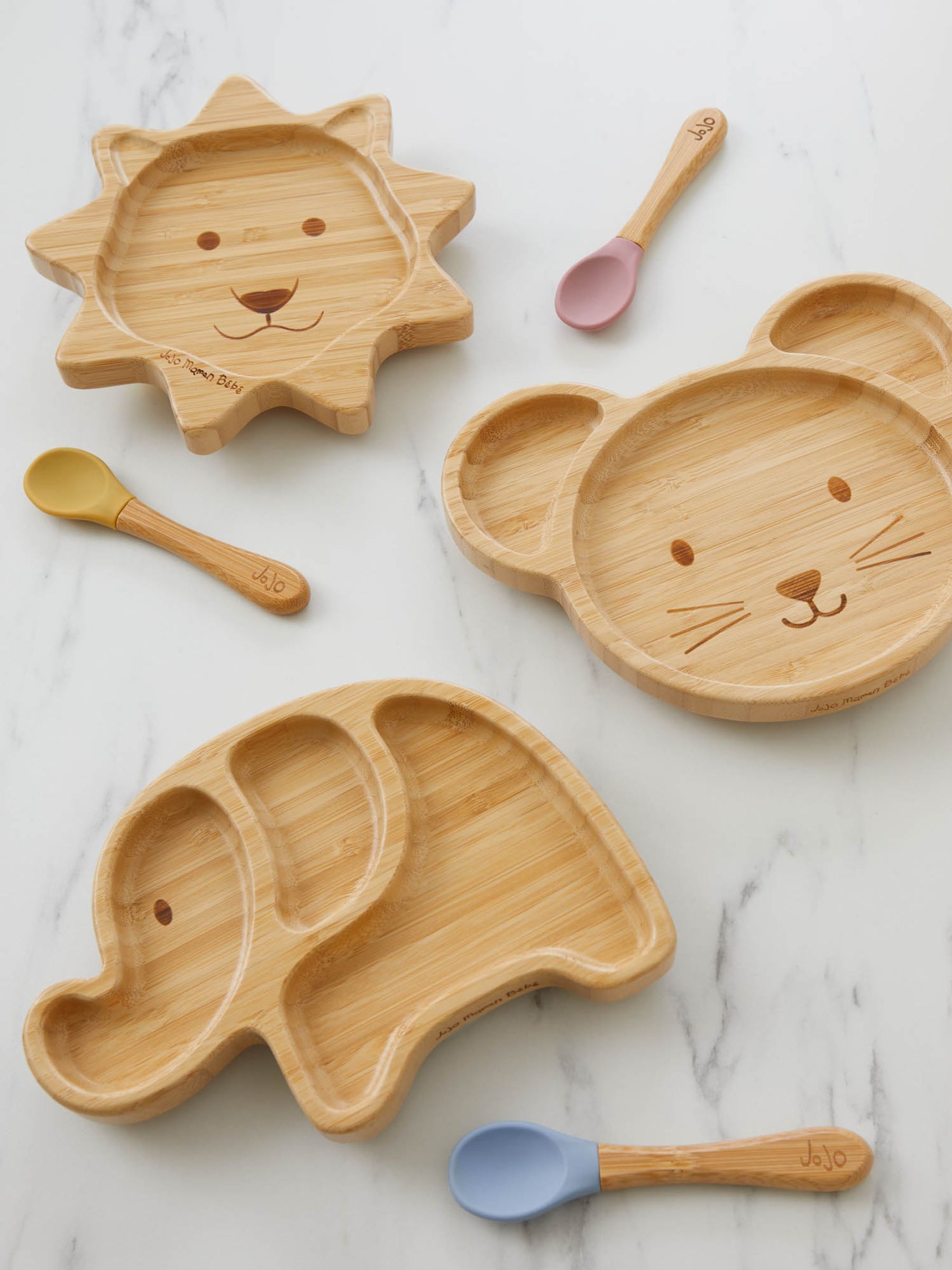 Bringing your little one a memorable mealtime is easy with the Bamboo Suction Plate & Spoon Set. A suction base grips the plate to your high chair or table to prevent spills, while a food-grade silicone spoon provides easy scooping and is soft against gums. Plus, it comes in a wonderful elephant design separated into 3 parts, which is great for chirping up little ones at mealtime and introducing new foods without blending tastes. 2-piece set includes elephant-shaped plate and suction spoon Ideal for toddler-led weaning Bamboo plate with suction pad Hand wash only