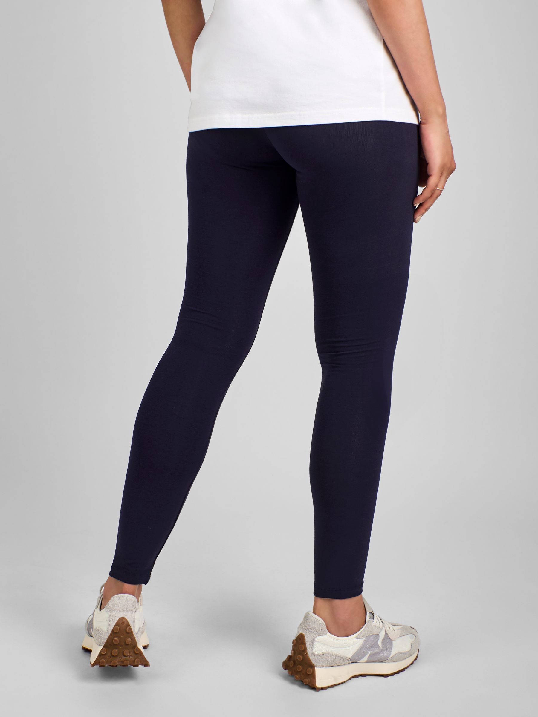 Every pregnant person deserves a great-fitting pair of maternity leggings. So why not double up the fun and buy two? Our 2-Pack Cotton Rich Maternity Leggings in navy will quickly become a hardworking staple in your maternity wardrobe, as they can be worn with T-Shirts, dresses, skirts, and even as pyjama bottoms. A wide jersey waistband can be worn either under or over your bump, depending on what you prefer, and the cotton jersey won't irritate your skin. Ideal for second and third trimesters, wearing these leggings guarantees comfortable clothing 24/7. The set includes 1 navy blue pair of leggings and 1 black pair of leggings Designed to fit throughout pregnancy Super comfortable stretch cotton jersey Wide waistband to wear under or over the bump No baggy knees 95% Cotton, 5% Elastane Machine washable