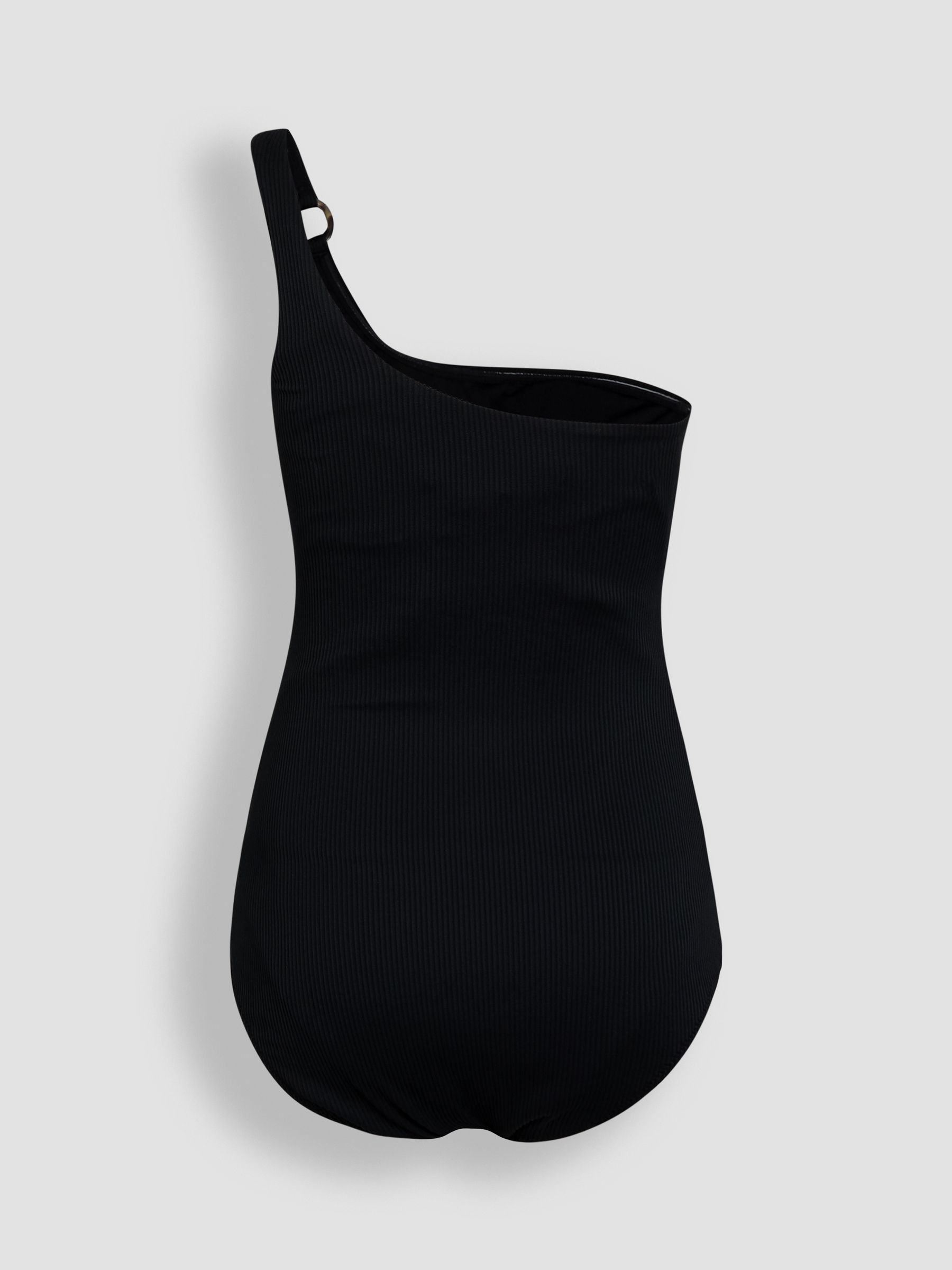 Elevate your maternity swimwear with style and practicality with our One Shoulder Swimsuit. The all-black ribbed swimsuit comes with a tortoise shell buckle in the sole strap, adding interest to the block look, while the one shoulder strap draws eyes to the shoulders and waist, flattering your figure. With a round neckline, the one-piece will look good in the paddling pool at home or at the beach to stay cool in the summer months. Designed to fit throughout pregnancy One-piece swimsuit with one shoulder strap Ideal for pool or beach To prolong the life of your maternity swimwear we recommend always rinsing immediately after use MAIN: 80% Polyamide, 20% Elastane LINING: 100% Polyester Machine washable