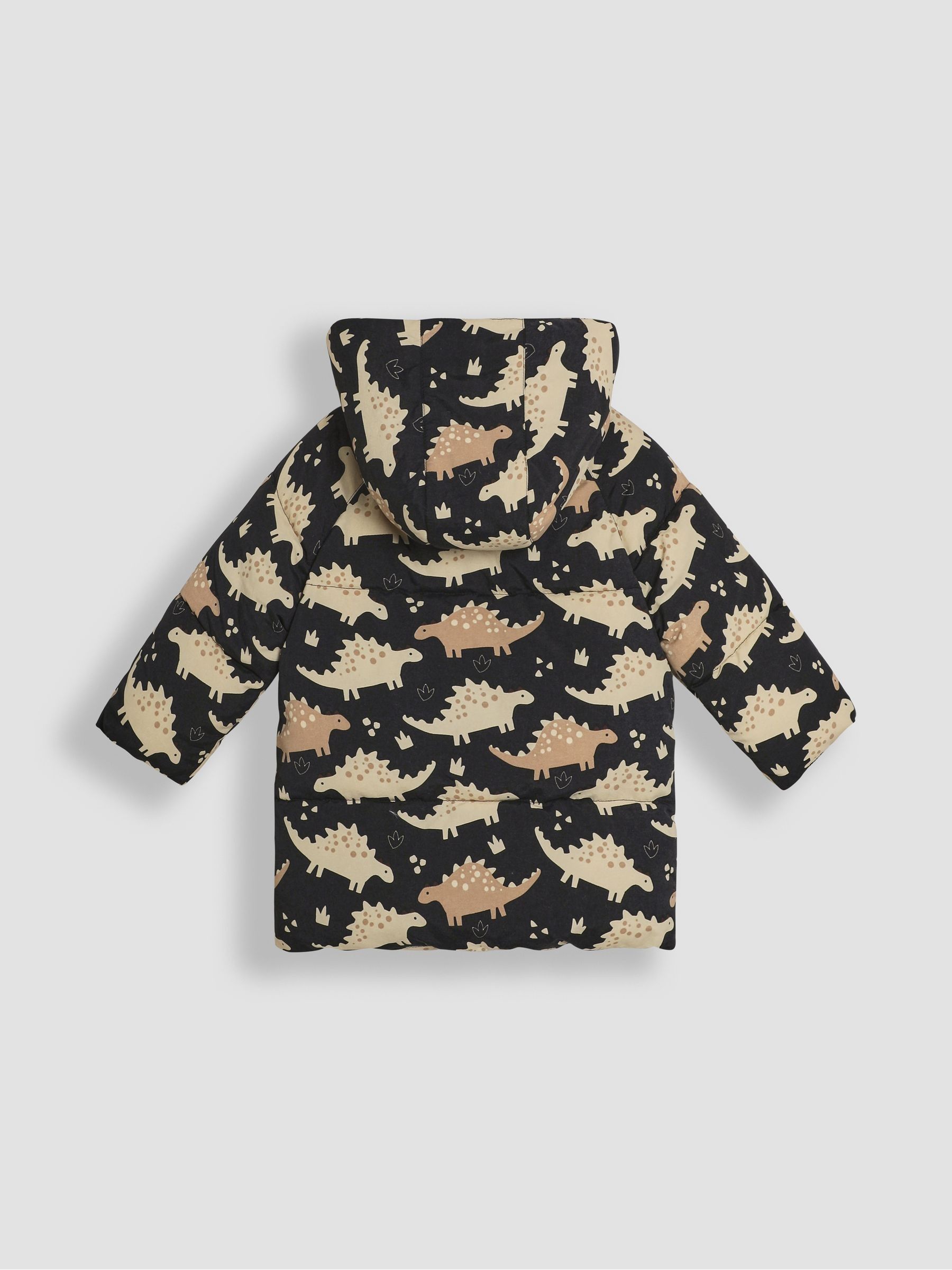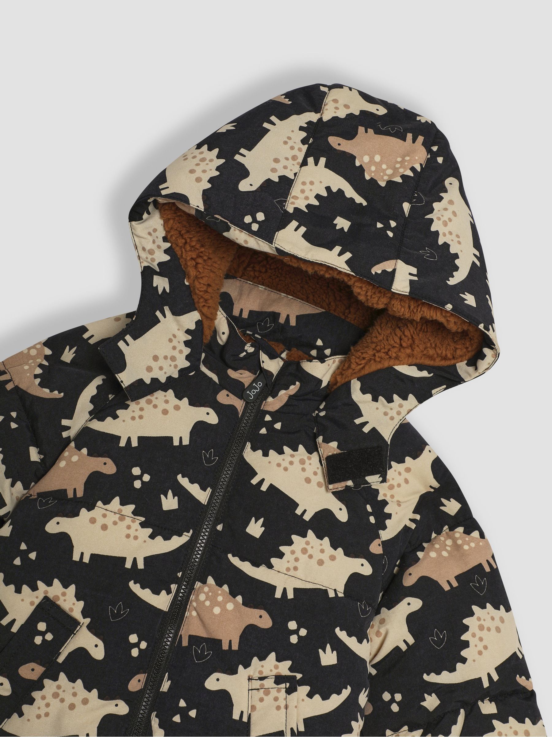 This brown Puffer Jacket is like a magical shield against the chilly weather, great for throwing on over a snug jumper. With its adorable dinosaur details, it adds a playful touch to your little ones' outfits and guarantees they won't waste any time in the mornings when it's time to head out. The cosy wadding traps warmth, making this puffer jacket an absolute must-have for all their adventurous days out. Dinosaur print in brown Cosy lined for comfort Zip front Hood Pockets to front