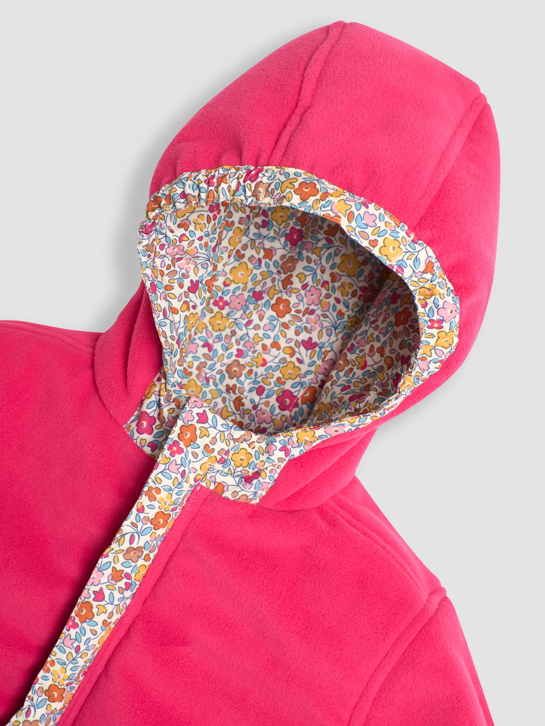 This Pink Floral Print Reversible fleece-lined jacket is the ideal solution for adventurous little ones who want to explore regardless of the weather. With its reversible design, you can switch between a snug fleece side and a waterproof side, giving you two fabulous looks in one. And that's not all! This jacket is specially designed to keep out wind, rain, and anything else Mother Nature throws your way. So go ahead, embrace the elements and have a blast. Reversible Hood with an elasticated opening Long sleeves with elasticated rib cuffs Zip front