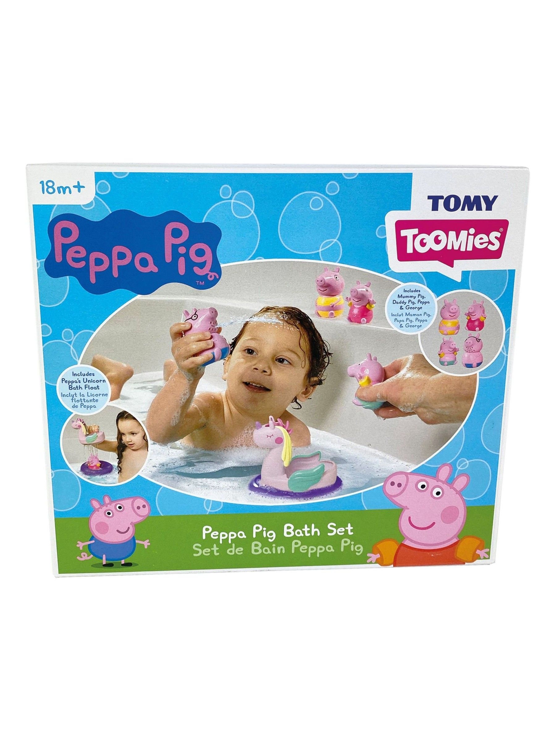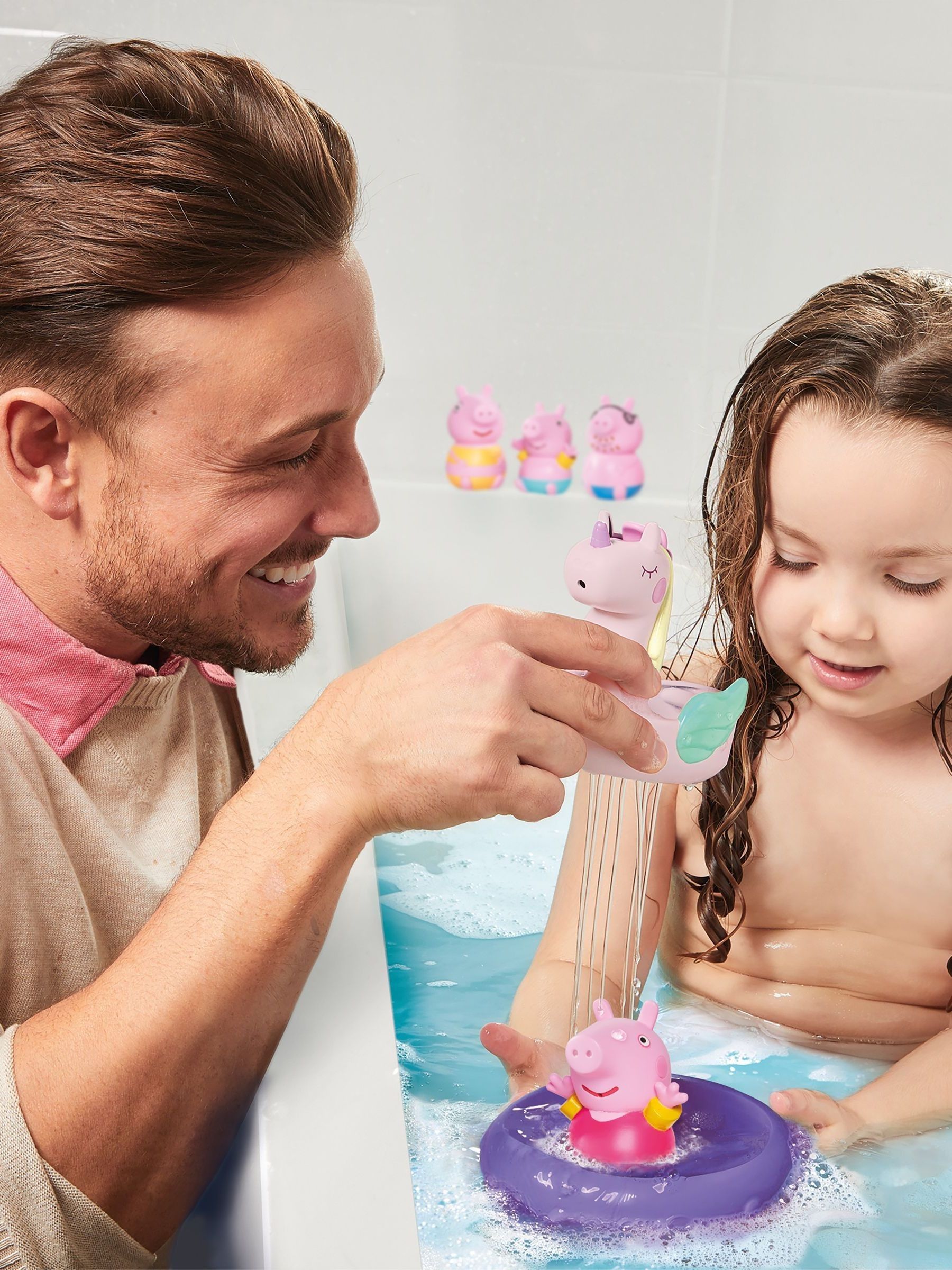 Each Character is wearing a colourful bathing suit, with Peppa and her brother George safely kitted out with mini water wings, these are unique to this set. Also included in this set is Peppa’s magical unicorn bath float.