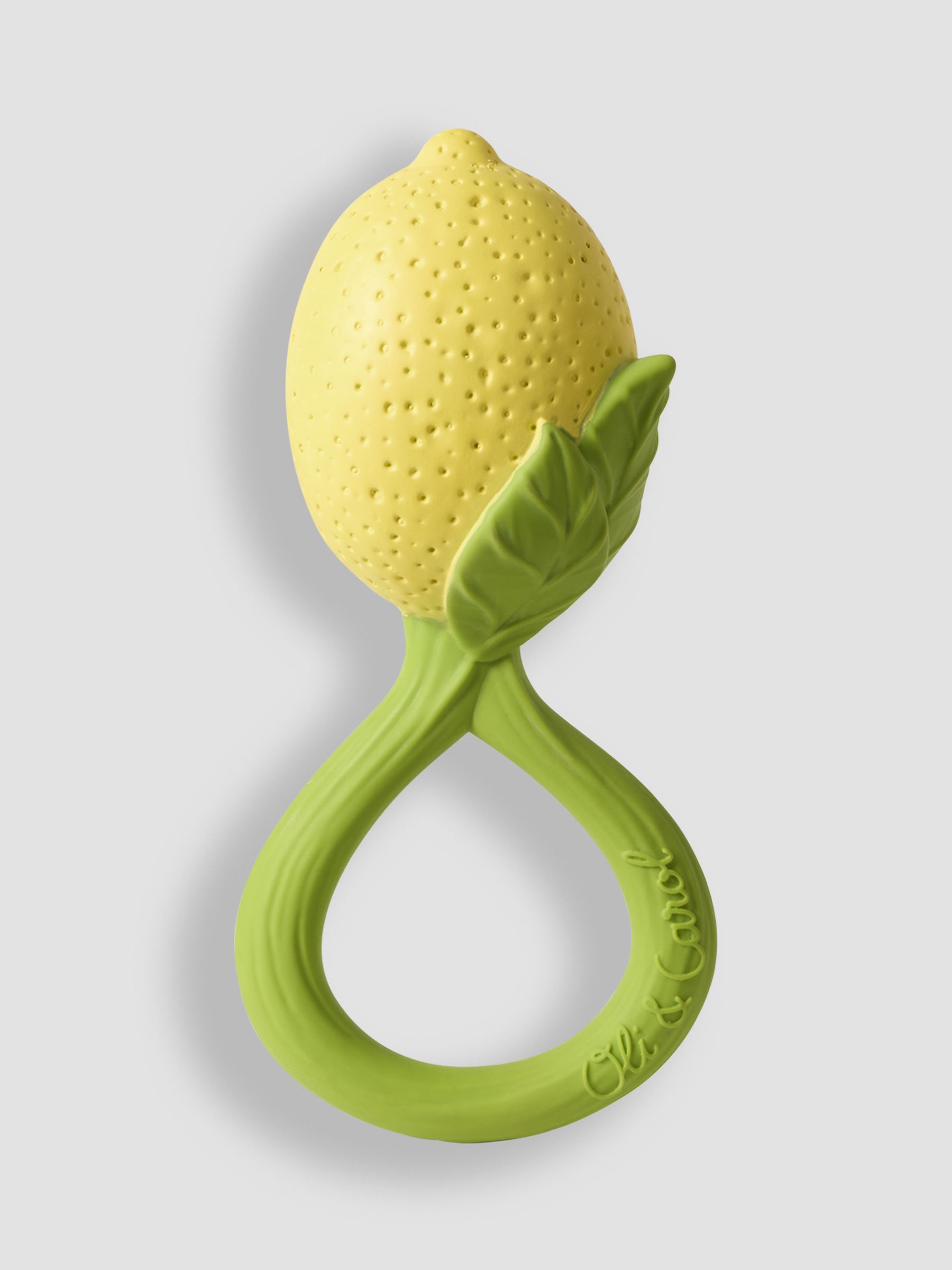 Add a touch of eco-friendly happiness to your little one's playtime with the Oli and Carol Lemon Rattle and Teether. Crafted from 100% natural rubber, this teether features upcycled cherry seeds that transform it into a charming rattle. With a variety of textures and intricate details, it's sure to captivate your baby's senses as they gnaw on it. Say hello to your baby's new best friend - the Oli and Carol Lemon Rattle and Teether! Made from natural rubber Soft and easy for little hands to hold Helps soothe sore gums Ideal as a delightful rattle toy Each toy is handmade, making every one unique Filled with recycled cherry seeds to soothe and calm your baby Designed hand-to-hand with certified otorhinolaryngologists Easy to hang 13.5 x 6.5 x 5cm