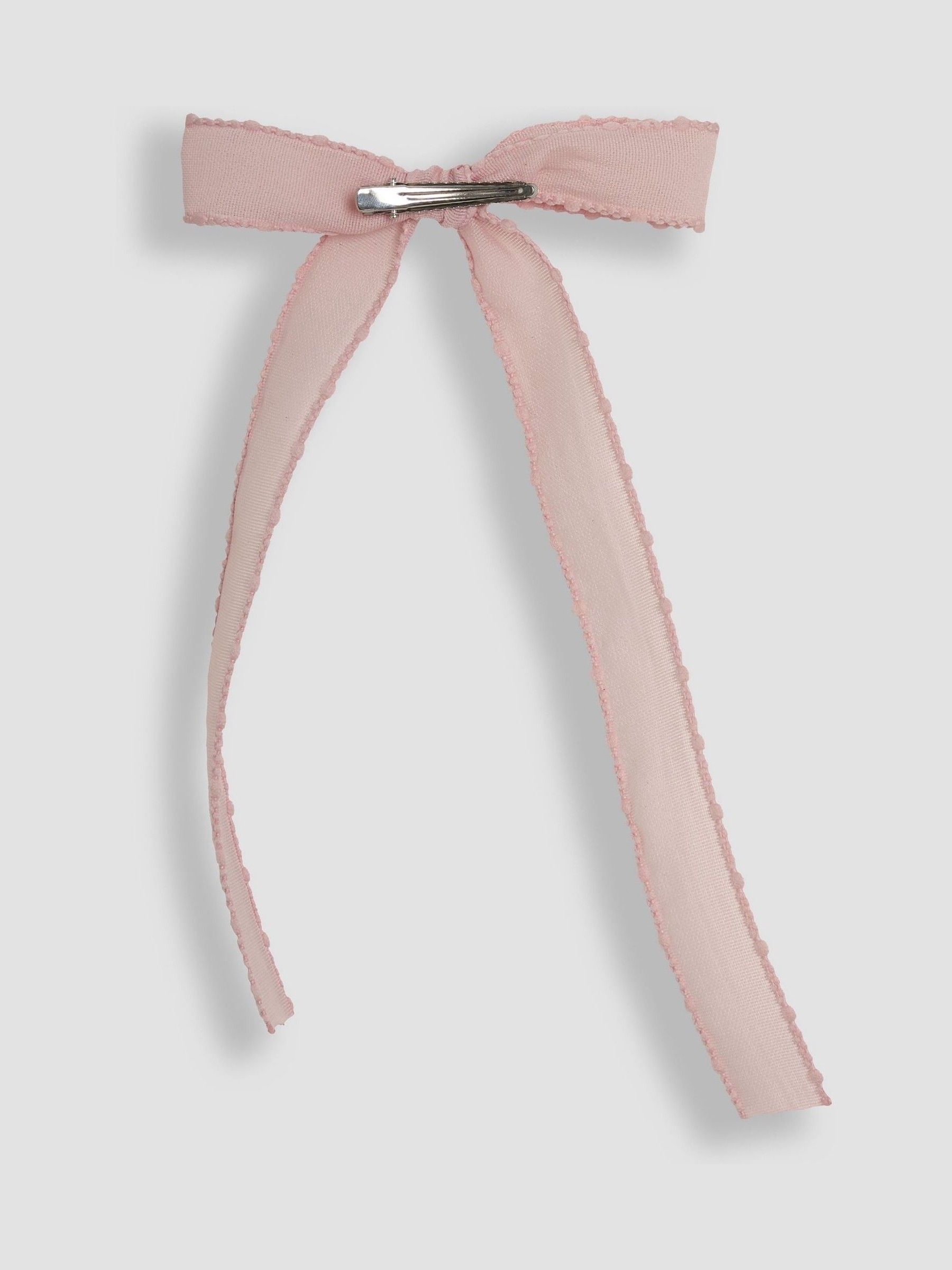 Bow-tiful adventures await with this whimsical Dusty Pink Bow Clip. With ribbon-like tails pretty in pink, this clip adds a playful swish with every turn. Designed to coordinate with many of our bestselling styles, this hair accessory set is a lovely way to keep their locks in order. Features a ribbon-like tail Crocodile-style clip Easier to fasten than normal clips Suitable from 3 years due to the small parts
