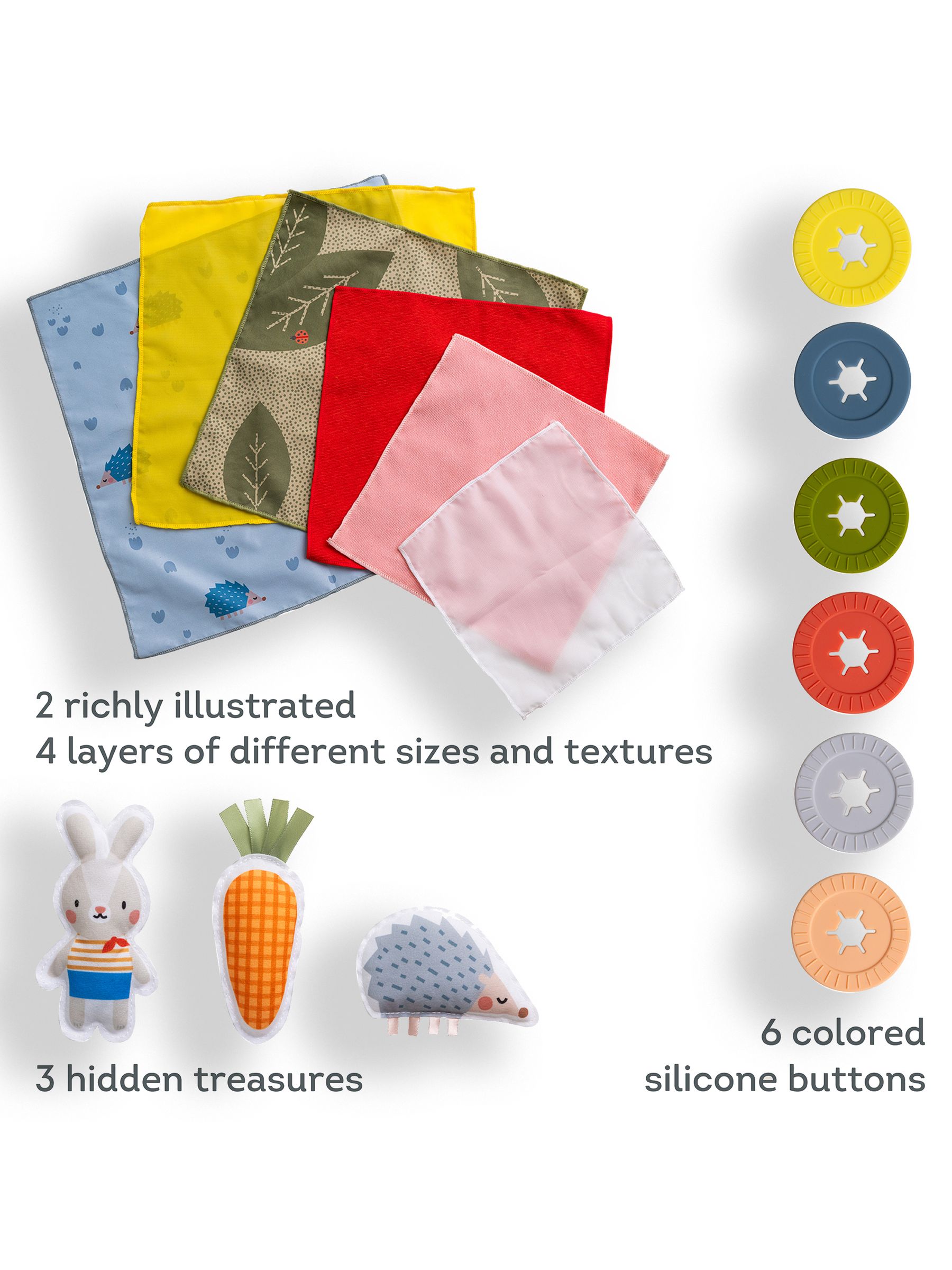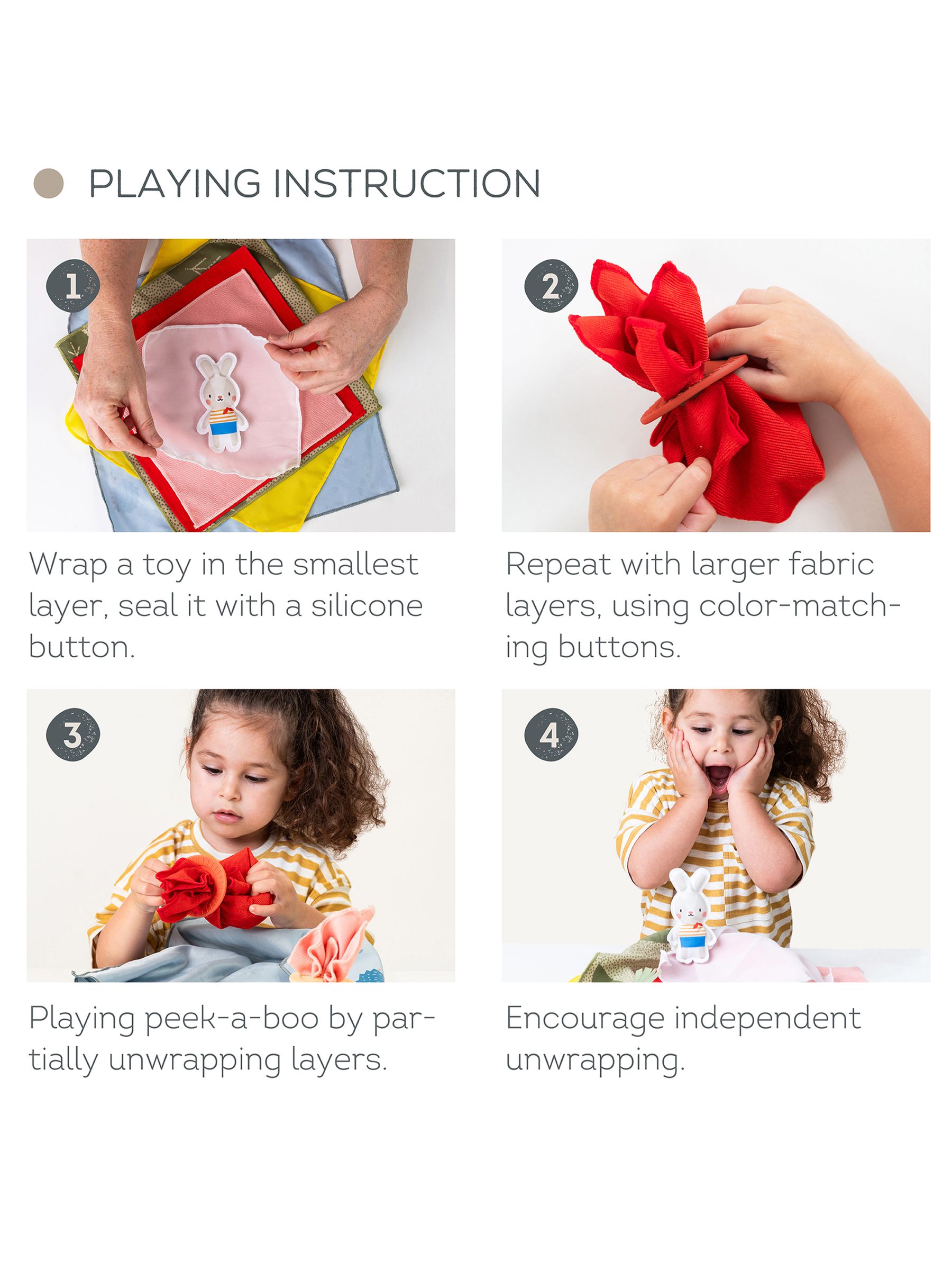 They can even take turns hiding the included toys themselves, or even their favourite items from home. The soft silicone connectors are easy for little hands to handle, while the colourful tissues are great fun to play with, helping with sensory and motor skill development.