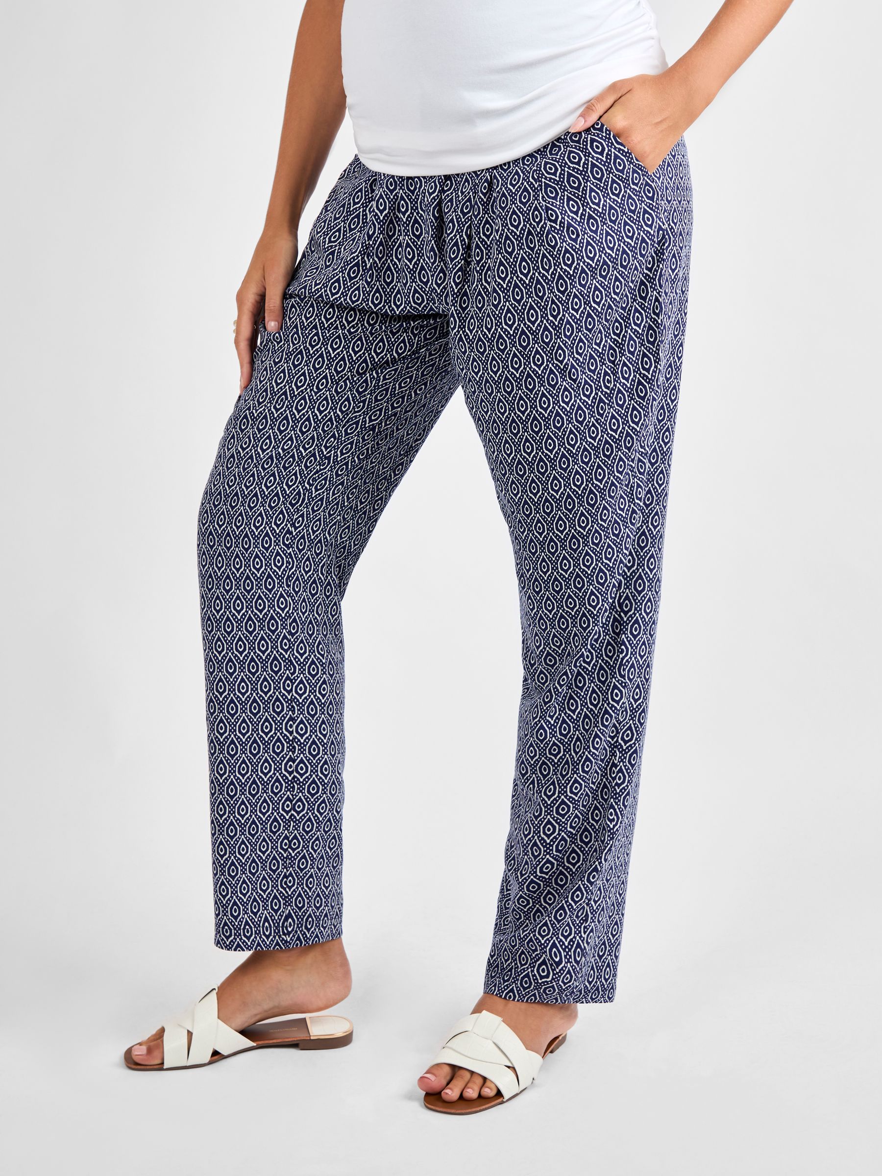Who said maternity wear had to be boring? Envigorate your maternity wardrobe with a pop of pattern with these eye-catching Maternity Trousers. Featured in a versitile navy blue, these trousers offer effortless comfort and style for whatever's in your diary.