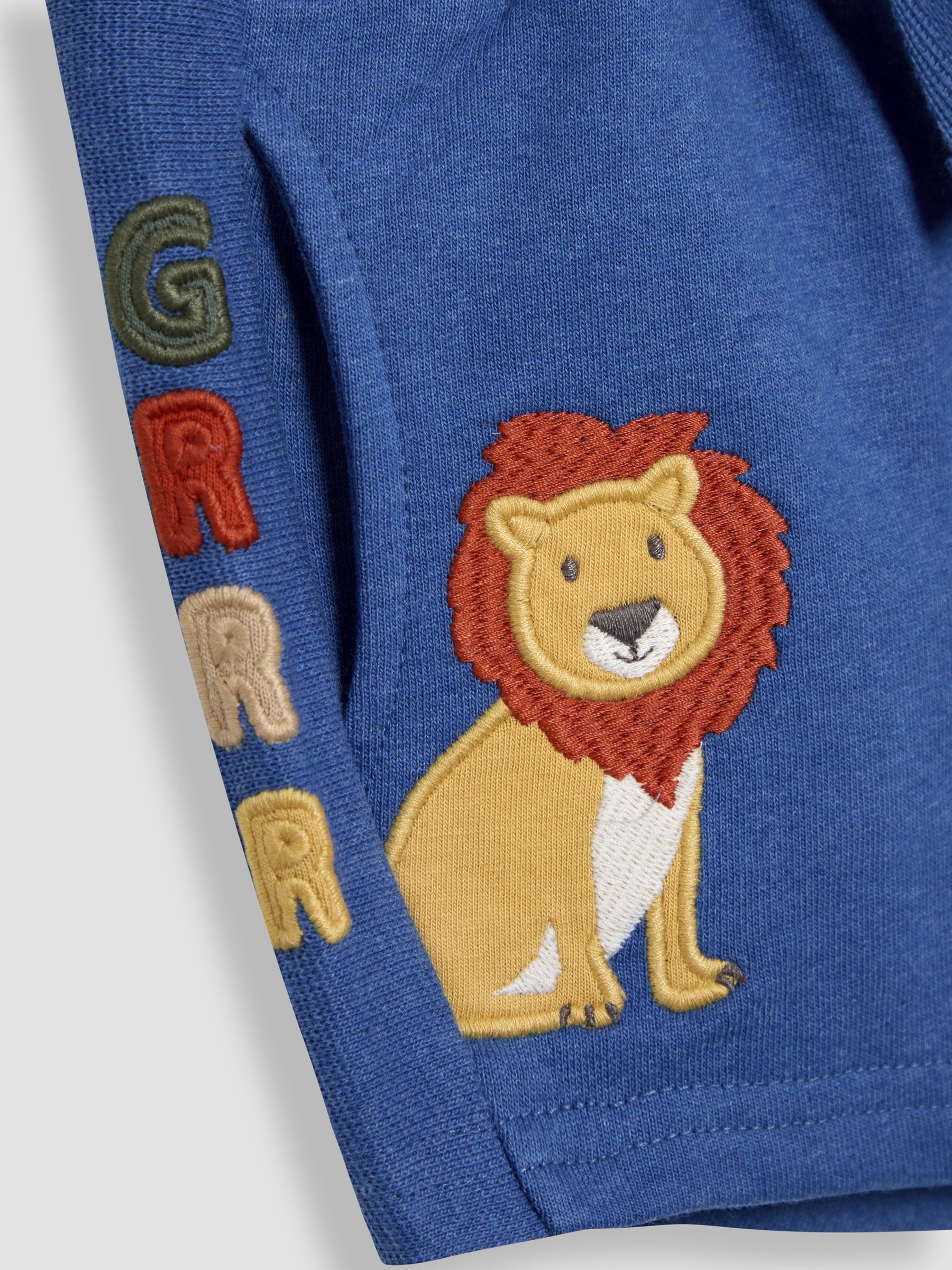 Rumble, roar, let's play some more! Enjoy fuss-free fun with these comfy and cool Lion Appliqué Shorts. The surprise lion pet in pocket feature will fuel your little cub's imagination, making every day a little more extraordinary (and a lot more comfy). Pair with a colourful lion tee for a roarsome outfit. Denim blue shorts with Grrr and Roar text design Lion appliqué Lion pet in pocket Elastic drawstring waistband Two side pockets Machine washable