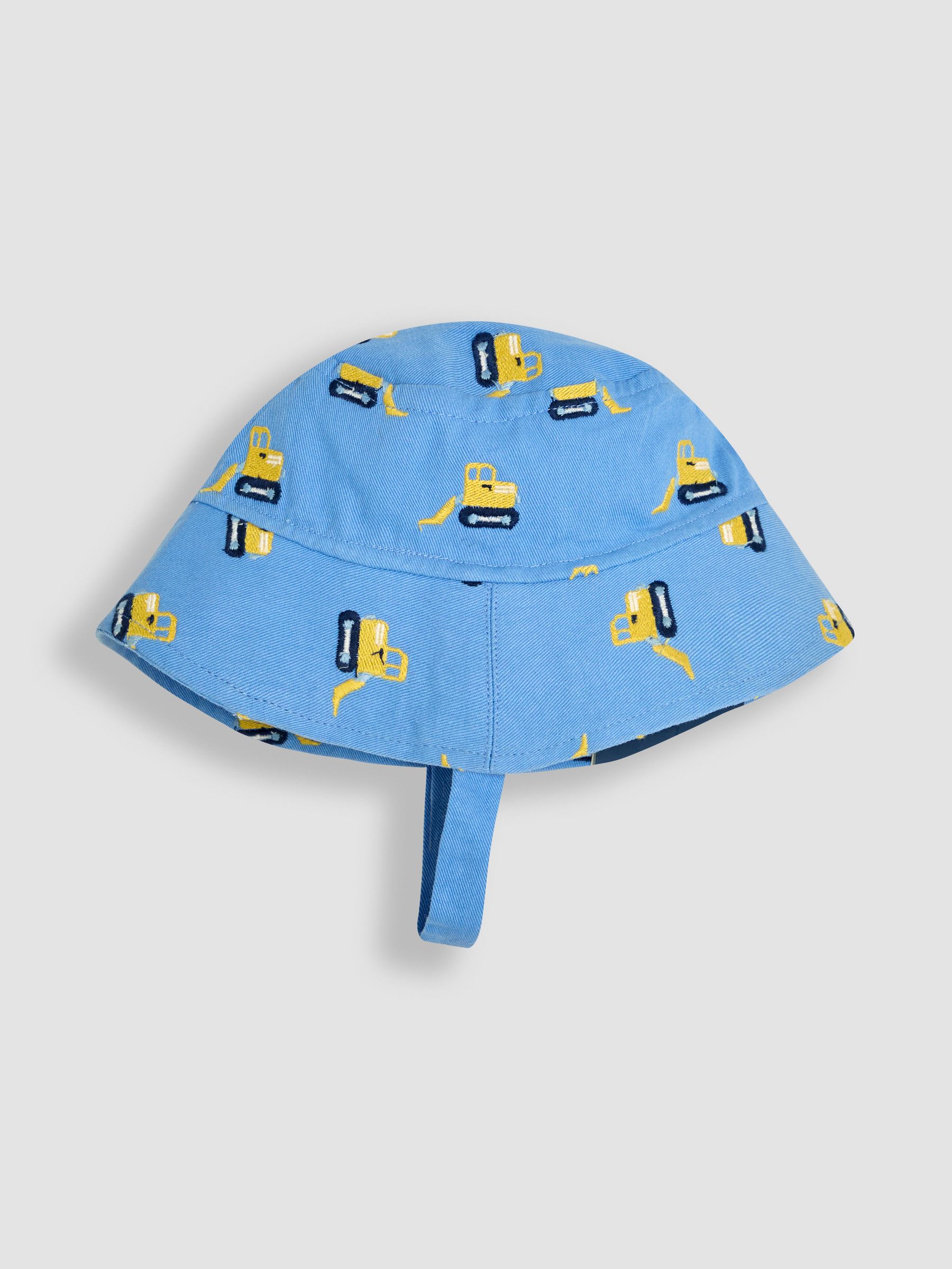 Dig up some fun in the sun with this cheery Embroidered Twill Sun Hat. A perfect accessory for sun-safeguarding and super-sweet style, this hat will be a summer staple for little construction fanatics. Blue twill sun hat All over yellow digger print Lightweight WARNING: Sun exposure causes skin damage. This item will only provide protection to areas directly covered and, to a lesser extent, areas shaded from the sun Only covered areas are protected; other exposed areas of the body should be protected by a high-factor sun cream Protection offered by this item may be reduced with use, or if stretched or wet Young children are particularly at risk of sunburn because of their delicate skin, babies are especially vulnerable Keep babies out of the sun. Hats cover heads and the nape of necks plus help protect eyes from glare Machine washable
