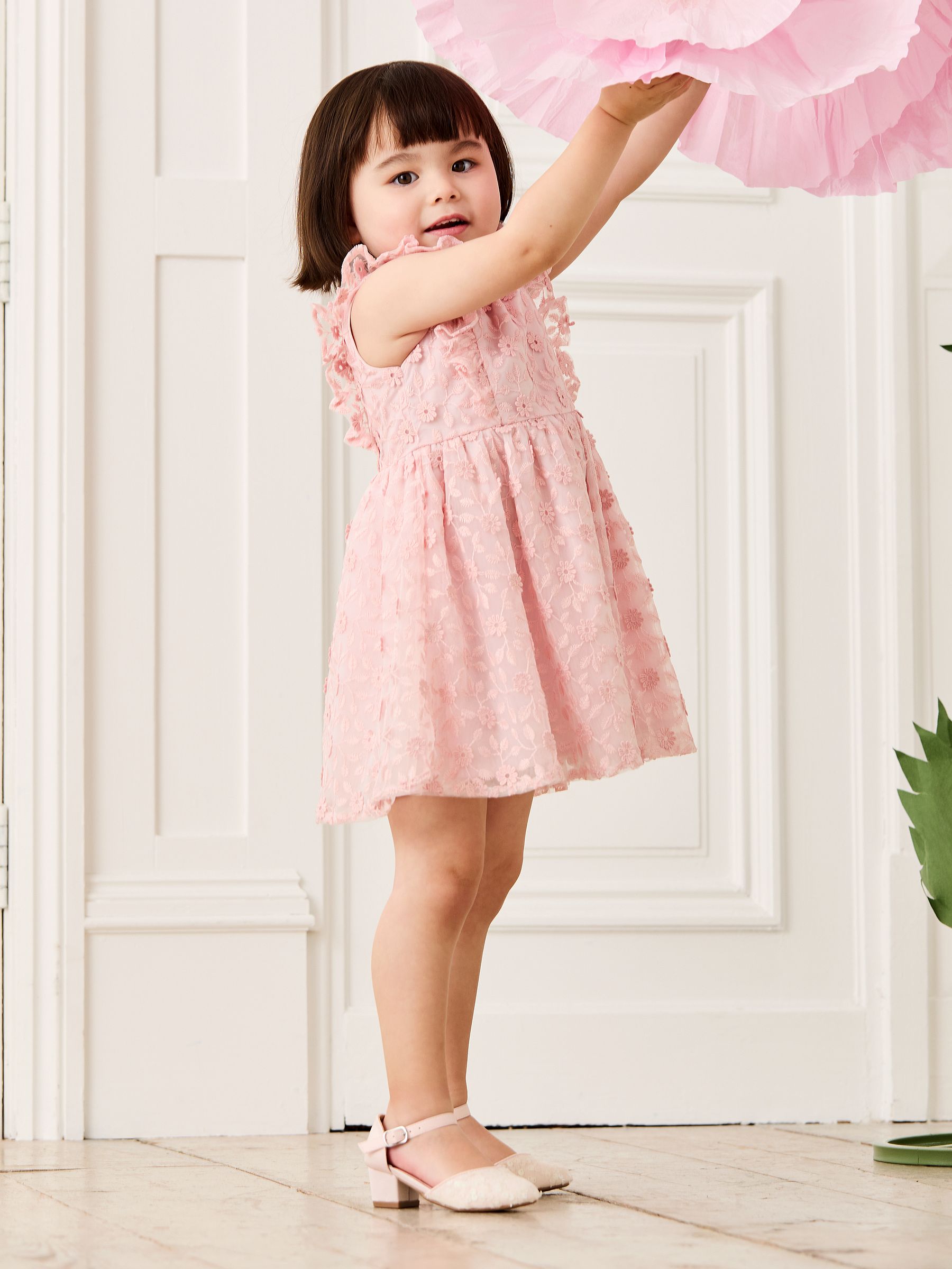 Pale Pink Embroidered Lace Frill Flower Print Girl Dress