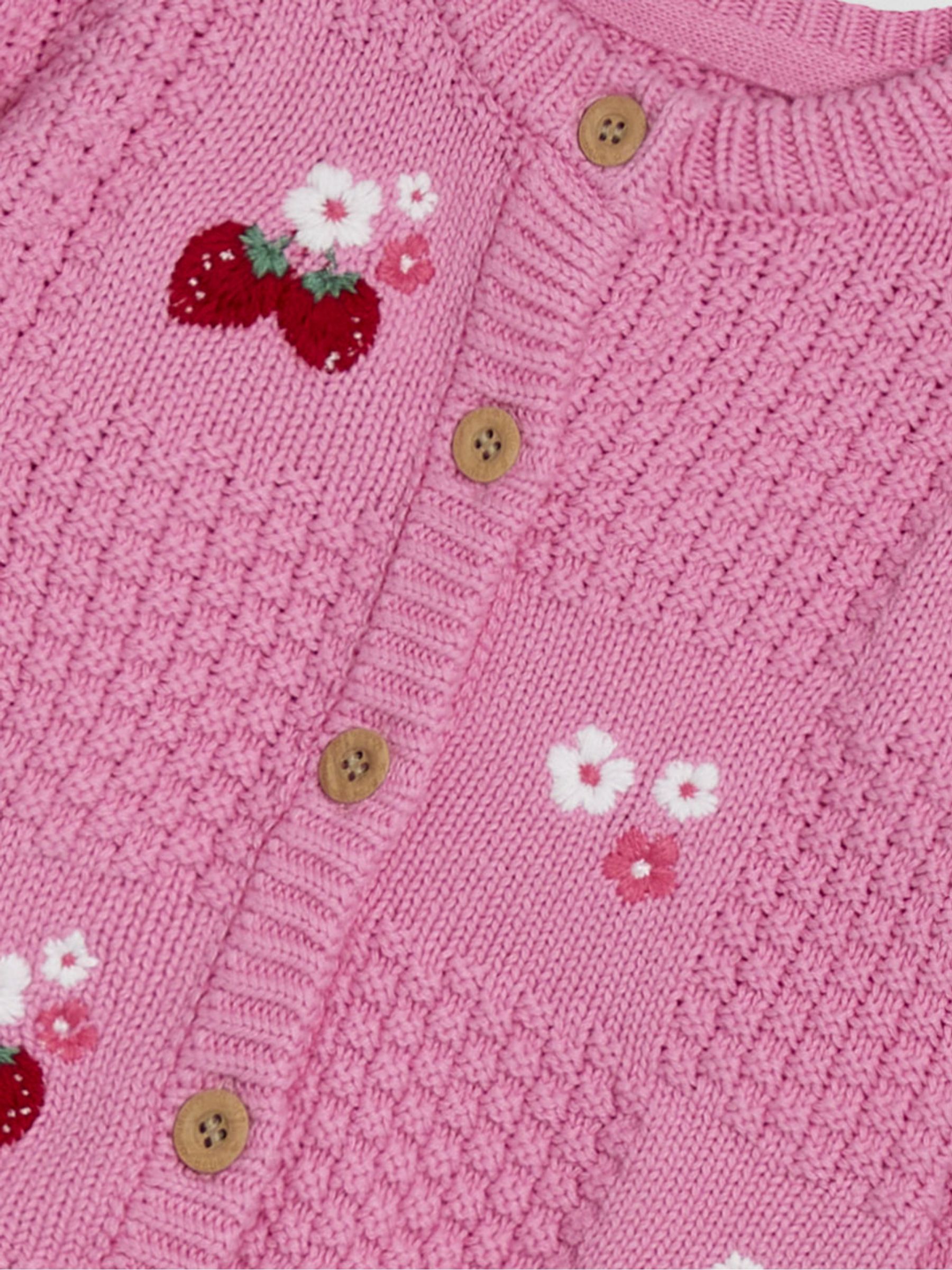 Pink Strawberry Embroidered 100% Cotton Cardigan
