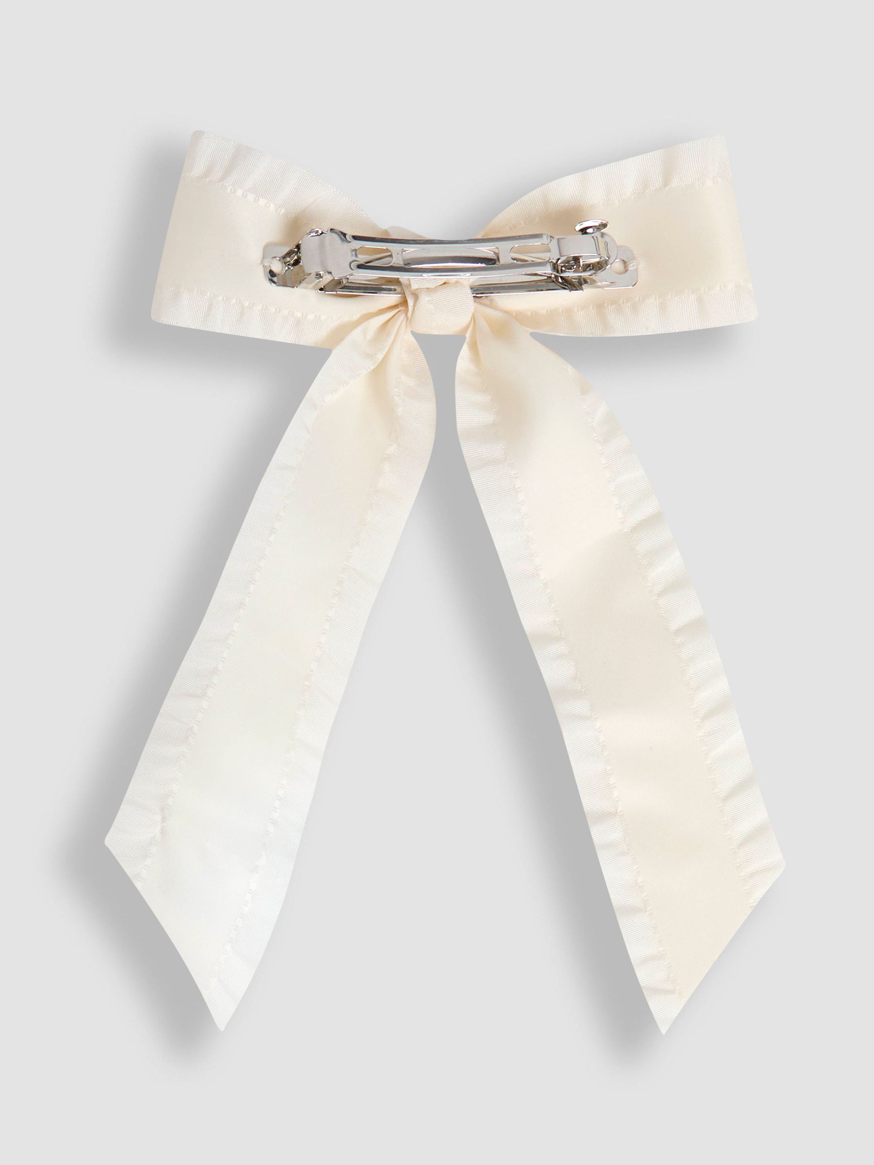 Dressed-up days call for a bow-tiful finishing touch. Enter our Ruffle Bow Hair Clip, the perfect delicate accessory for any springtime soirée or picnic party. The pretty frills add an extra touch of sweetness, so your little one can keep hair out of the way while looking oh so charming. Cream satin finish Ruffled edges Suitable from 3 years due to small parts