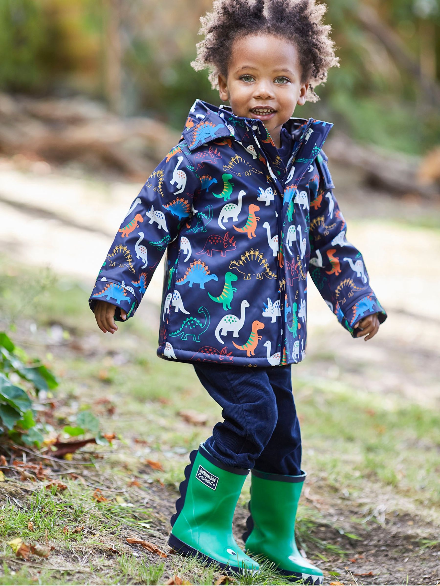 Our children's wellies in green dino print are without a doubt one of our most popular products and are available in plenty of great colours to coordinate with our outerwear styles. Made from natural rubber they are soft, supple, flexible and comfier for little feet than plastic wellingtons. The sole is gently ridged and grippy, again in lighter-weight rubber to make them not as heavy as other brands. With anti-sweat lining, they're comfortable enough for all-day wear splashing in those puddles.