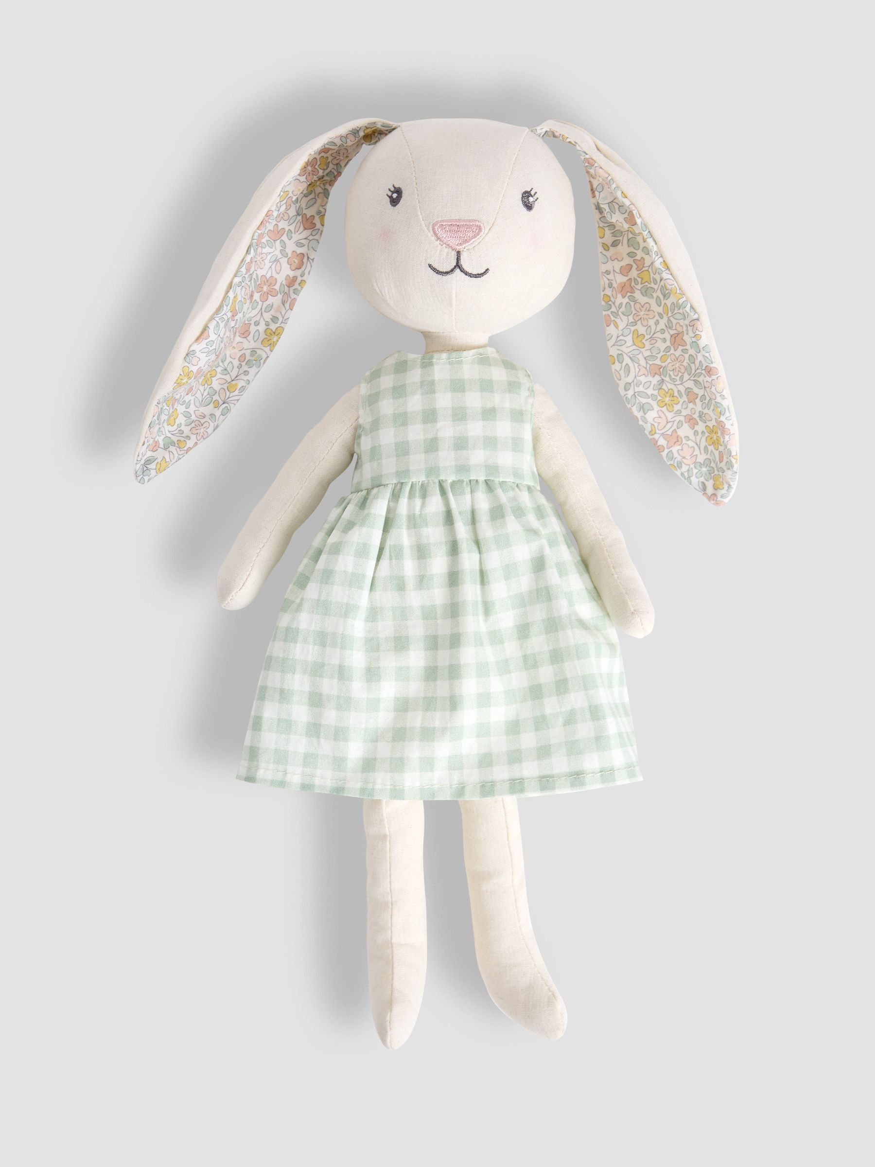 Hoppy, floppy, and oh so cuddly, this Bunny Ragdoll is a charming gift for little ones. With a pretty green gingham dress, long ears with a sweet floral lining, and a little pink nose, this bunny is the perfect companion for springtime picnicking days and snuggly storybook nights. Ideal gift Floral-lined floppy ears Gingham green dress accessory Hand wash only Suitable from 12 months 3 for 2 on selected JoJo Maman Bébé Toys. * * Saving applied will be apportioned across all qualifying items. To get the saving, you must order the qualifying items within the same order at the same time. If you later return one of the items, you will not be entitled to the discount. Offer applies to selected items at full price. Please refer to T&Cs for full details.