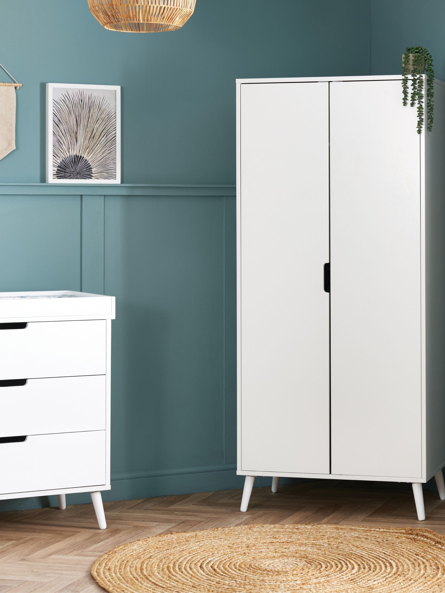 A new addition to the stunning Maya Collection from Obaby, inspired by Scandinavian design The Maya Acrylic features a clean white finish combined with contemporary acrylic spindles making it the perfect addition for families looking to add the wow factor to their nursery. Suitable from birth, the Maya cot bed will grow with your little one. The top position of the three height-adjustable mattress base allows you to put down your baby with less pressure and strain applied to your back, and as they develop and start to find their feet, you can maintain their safety by lowering the base. When your little one is ready to begin their transition, the included dual-ended safety rail will provide reassurance and familiarity, and once they are used to their “big bed,” this can be simply removed to create a stylish toddler bed. The Maya changing unit is the perfect storage companion, featuring three 34L capacity drawers with recessed handles, enabling you to easily put away and quickly locate your little one’s belongings. On top of the unit is a changing area capable of fitting a changing mat up to 80 x 46.5cm. Once the changing area is no longer required it can be easily removed. Completing the room set is the Maya double wardrobe. Putting style and functionality at the forefront, it offers the ideal storage solution for your little one’s clothes. The large cupboard space features two hanging rails and a single full width shelf, all fronted by double soft-close doors with recessed handles. This item will be delivered directly to you from our branded partner. Prior to delivery our partner or their carrier will contact you to confirm a date. Unfortunately weekend deliveries are currently unavailable.<br/><br/> Please note that delivery is unavailable outside the UK Mainland. Multibuy: Save 10% when buying 2 or more items each priced at £150 or above across selected Sofas, Chairs, Rugs, Beds, Mattresses and Furniture Collections. Multibuy is only applicable to the UK Mainland Area.* Condition: * Saving applied will be apportioned across all qualifying items. To get the saving, you must order the qualifying items in the same order at the same time. If you later return one of the items, you will not be entitled to the discount. Offer applies to selected items at full price. Please refer to T&Cs for full details. This product requires self-assembly. Regrettably, self-assembly items cannot be returned once assembly is part or fully completed, unless they do not comply with the description given, are faulty, or are not fit for any stated purpose. Your statutory rights are not affected.